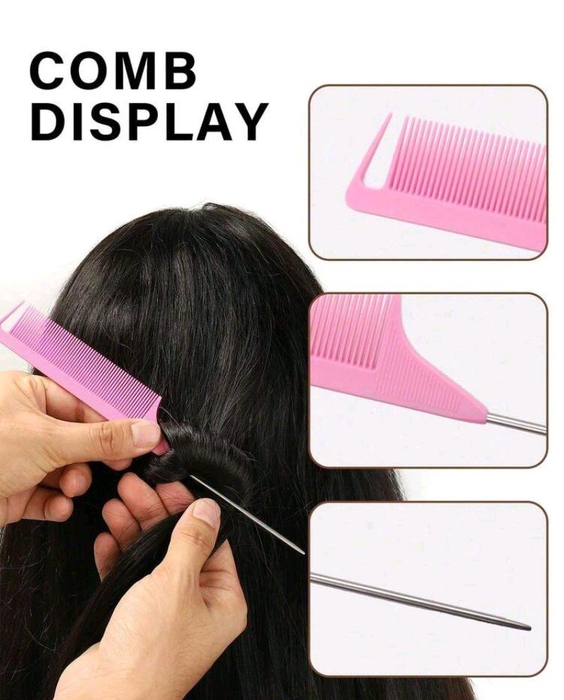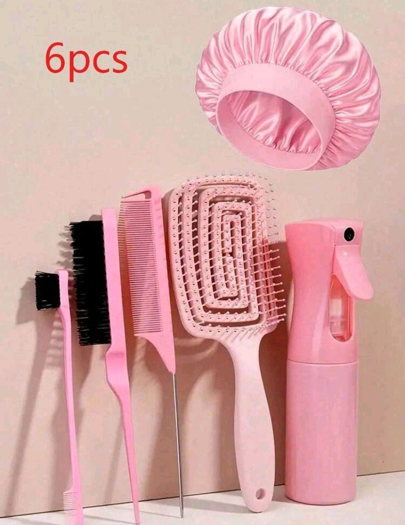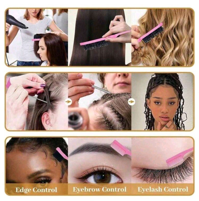 مجموعة أدوات تصفيف الشعر 6 قطع، تشمل 2 حلقة ضفيرة فرنسية، مقص قص الشعر في علبة جلدية، مشط تضخيم، مشط ذيل، فرشاة حافة (للخط الشعري والرقبة)، مناسبة لتصفيف شعر السيدات
