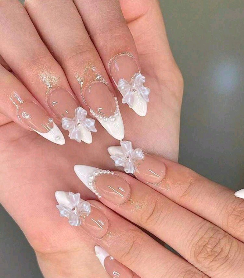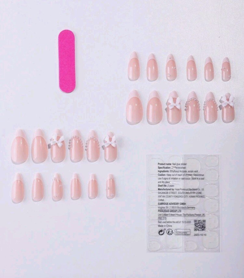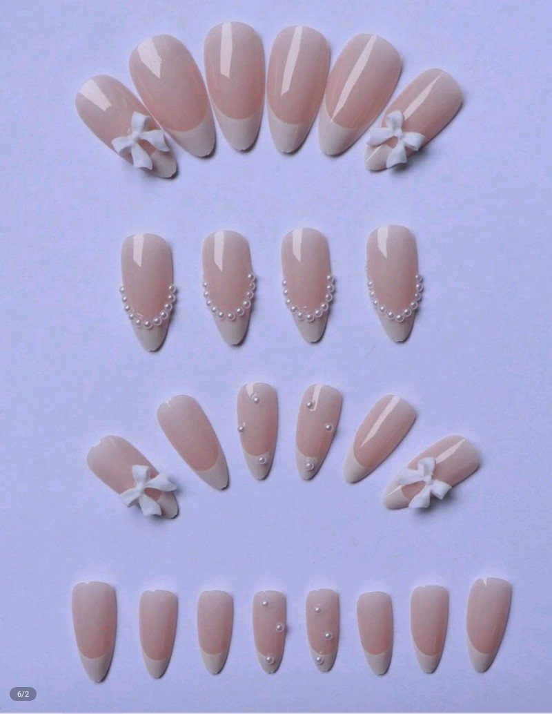 عززي سحرك: 24 قطعة أظافر صناعية بيضاء لوزية بتصميم فرنسي وربطة عنق مرصعة بالراين، أظافر صناعية كاملة التغطية لامعة من مجموعة الصيف، تشمل 1 مبرد أظافر بلون عشوائي و1 ورقة صمغ جيلي للحفلات والمناسبات والاستخدام اليومي, أظافر المناسبات الخاصة,أظافر الحفلة,أظافر على الطراز الفرنسي,أظافر سهلة التطبيق