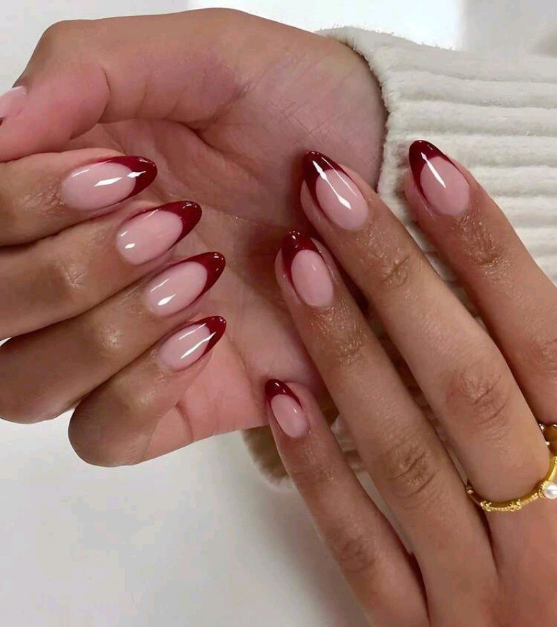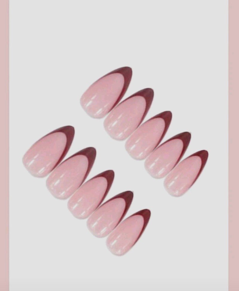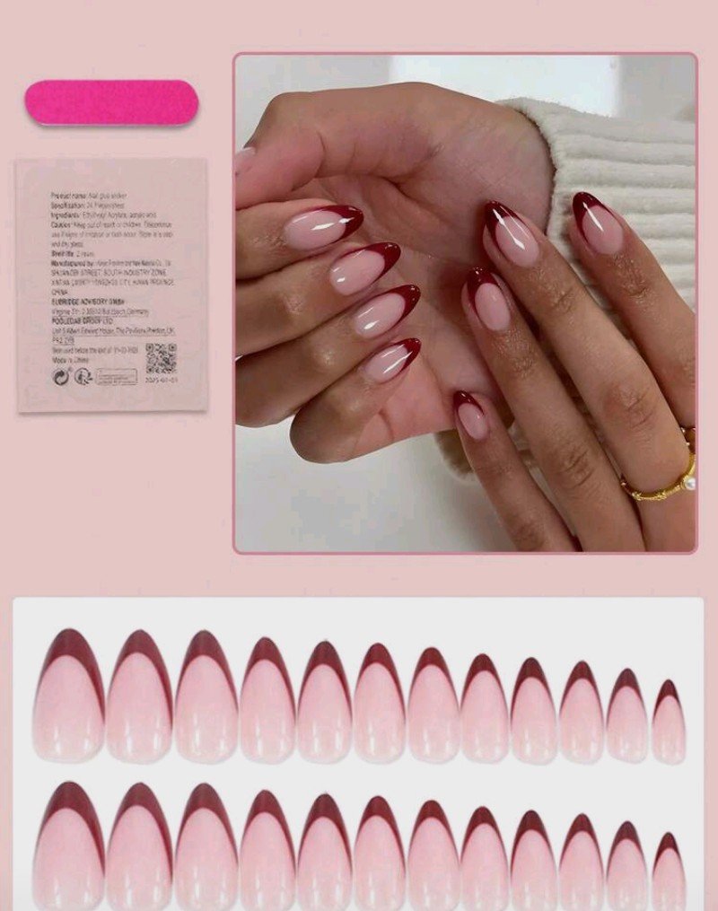 24 قطعة ملصقات أظافر قصيرة بشكل اللوز، فرنسية حمراء مدببة، بطراز بسيط، تغطية كاملة، مناسبة للنساء والفتيات للاستخدام اليومي، إكسسوارات أظافر صيفية، لوازم الأظافر