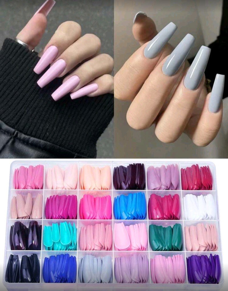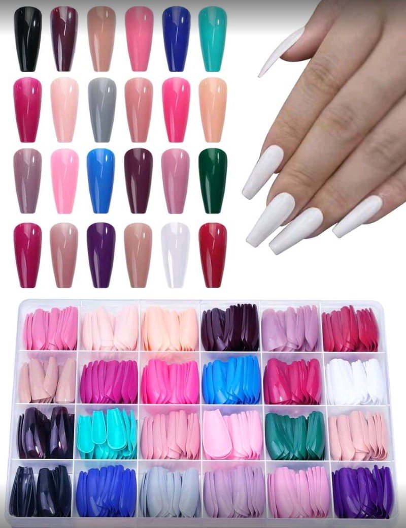 + Free Shippingمجموعة أظافر صناعية باليه بألوان مختلطة 576 قطعة – لامعة، شكل سلم متوسط الطول للمانيكير والبيديكير