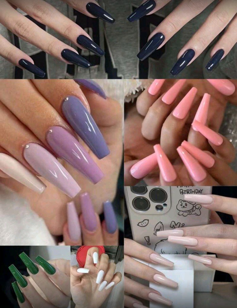 مجموعة أظافر صناعية باليه بألوان مختلطة 576 قطعة – لامعة، شكل سلم متوسط الطول للمانيكير والبيديكير