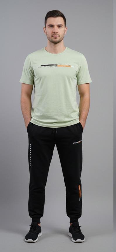 + Free Shippingطقم رجالي أنيق: تي شيرت قصير الأكمام برقبة مستديرة + بنطلون رياضي برباط، زي كاجوال مطبوع لفصلي الربيع/الصيف للرياضات الخارجية
