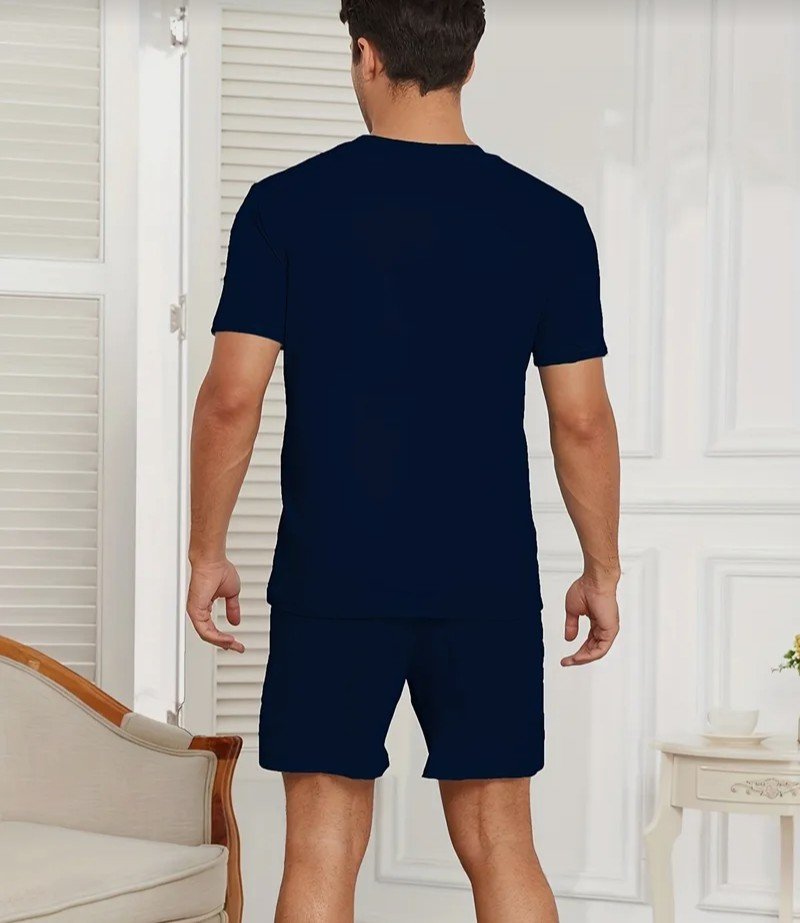 طقم بيجامات رجالية  الحجم بأسلوب بسيط، طقم قمصان بأكمام قصيرة وياقة مستديرة وشورت، طقم بيجامات مريحة وعصرية وخفيفة الوزن للرجال
