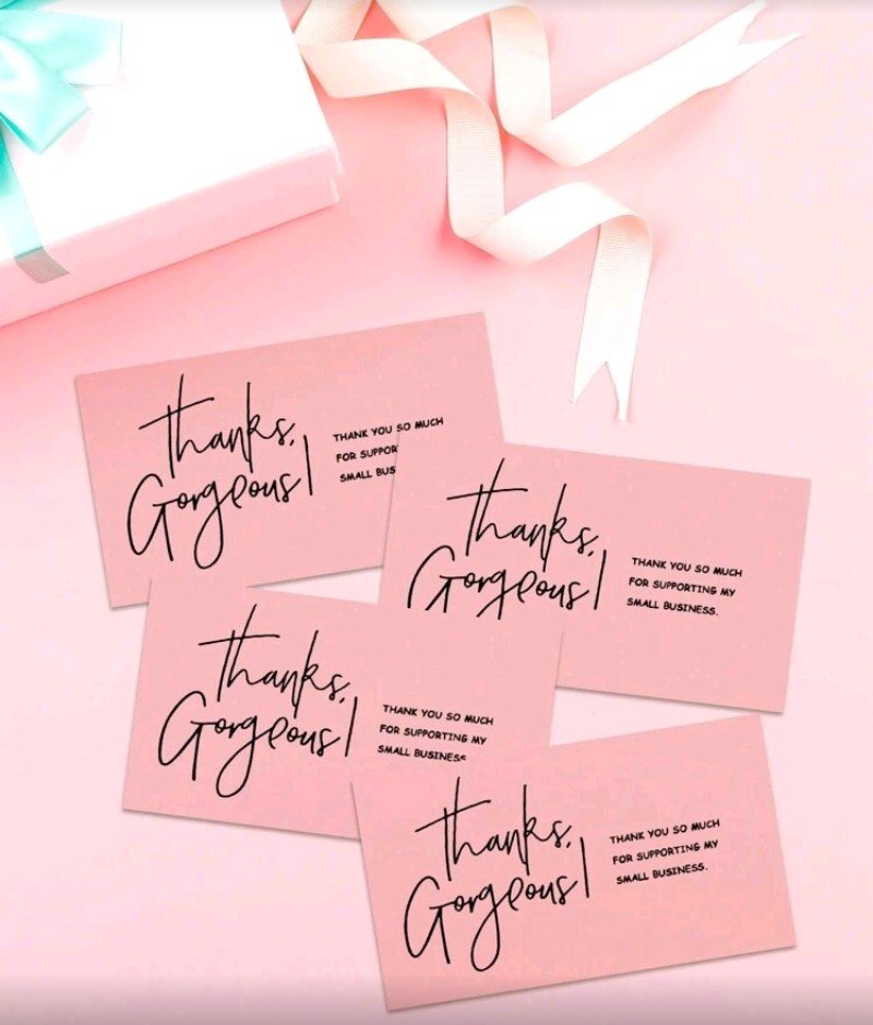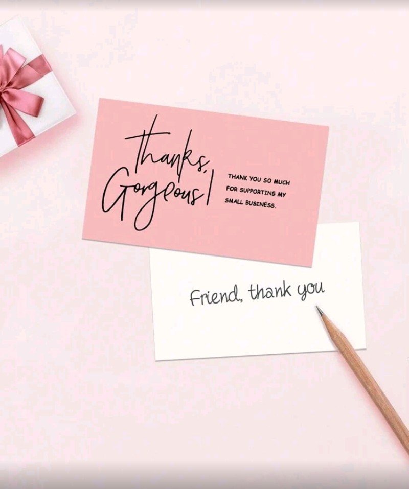 ٥٠ بطاقة شكر وردية اللون لدعمكم مشروعي الصغير، بطاقات تهنئة وتقدير، ورق مقوى، هدية للبائعين، عيد الحب