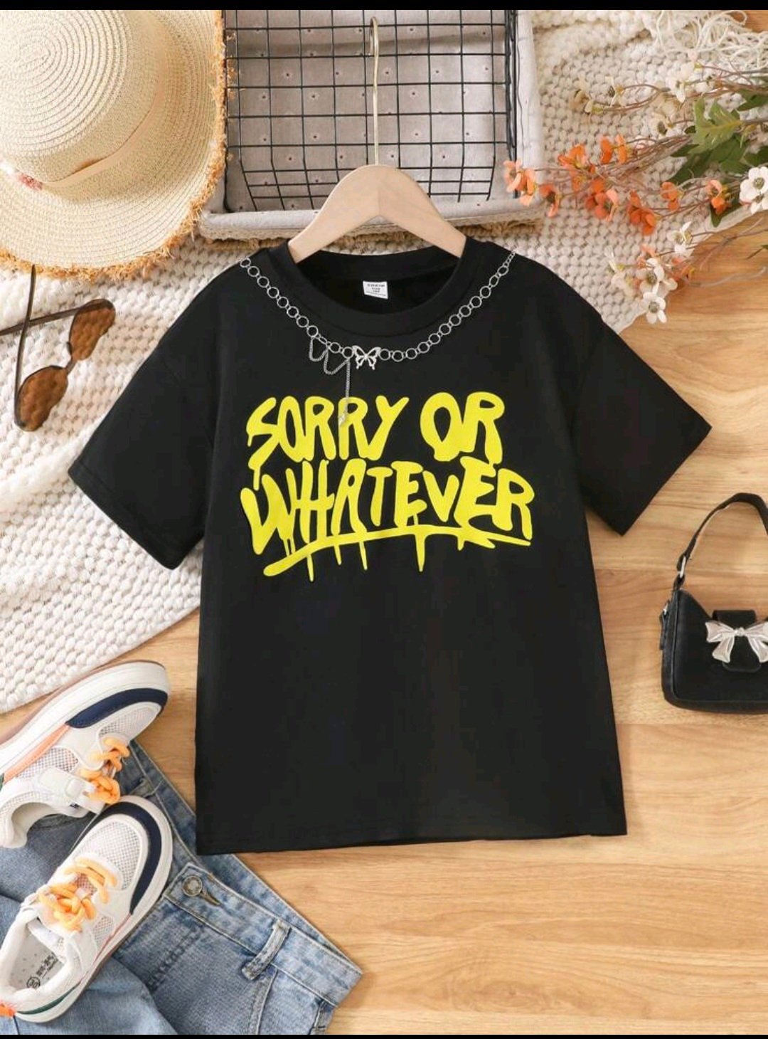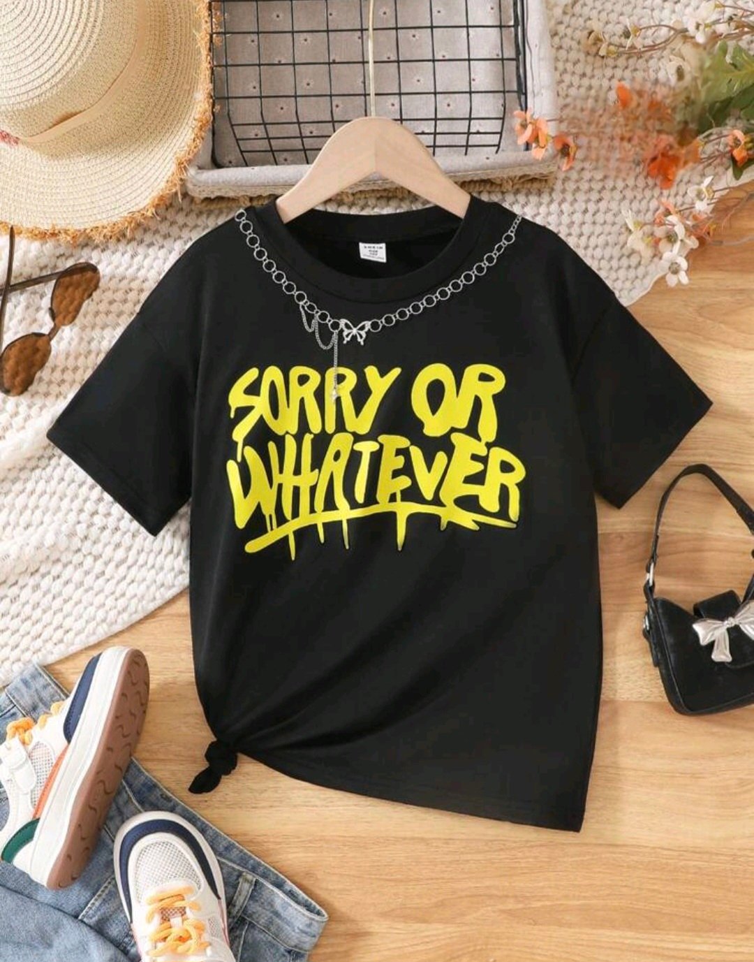 + Free Shippingبلوزة بناتي محير كاجوال اسود بطبعة حروف امامية تصميم بسيط