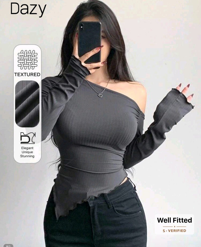+ Free Shippingقميص نسائي أنيق بدون أكمام بأكمام طويلة مضلعة – حاشية غير متماثلة، رمادي سادة، أسلوب أنيق غير رسمي لفصل الربيع/الخريف، قمة موضة الربيع | قمة حاشية غير متماثلة | البناء
