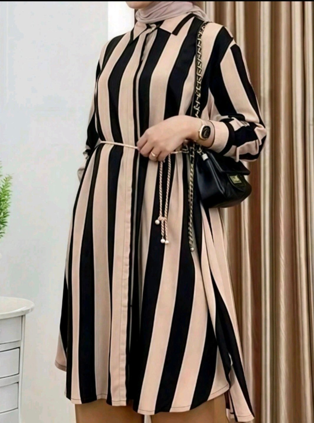 + Free Shippingبلوزة ستاتي عربية محتشمة باكمام طويلة مخططة