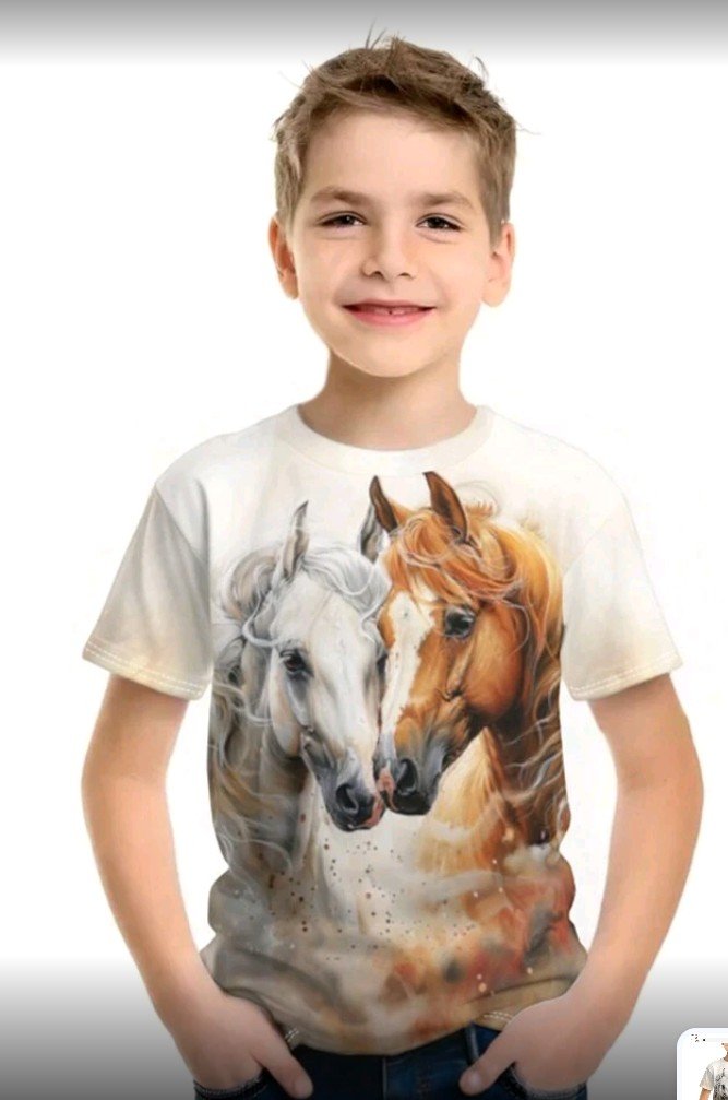 + Free Shippingتي شيرت كاجوال بنمط حصان بسيط اكمام قصيرة مناسب للصيف