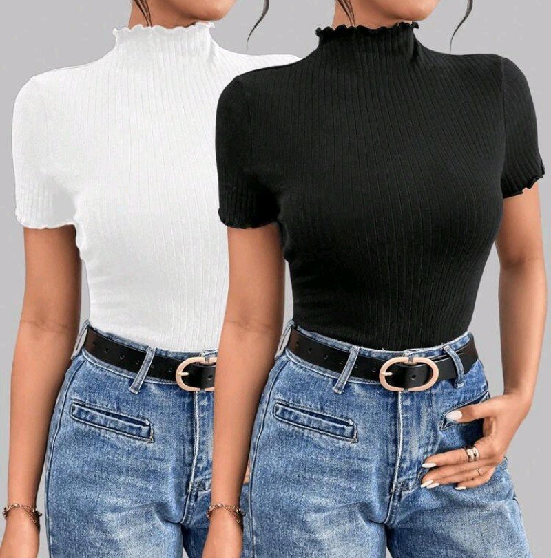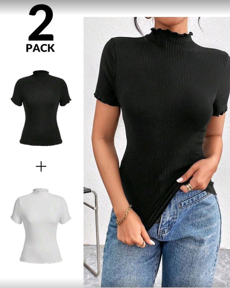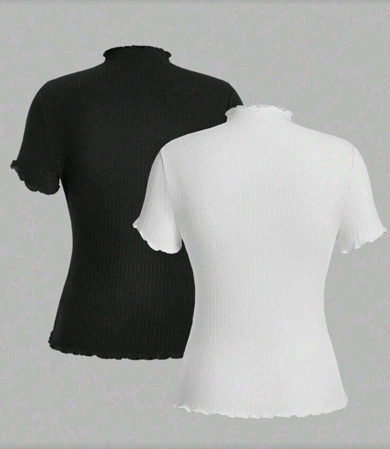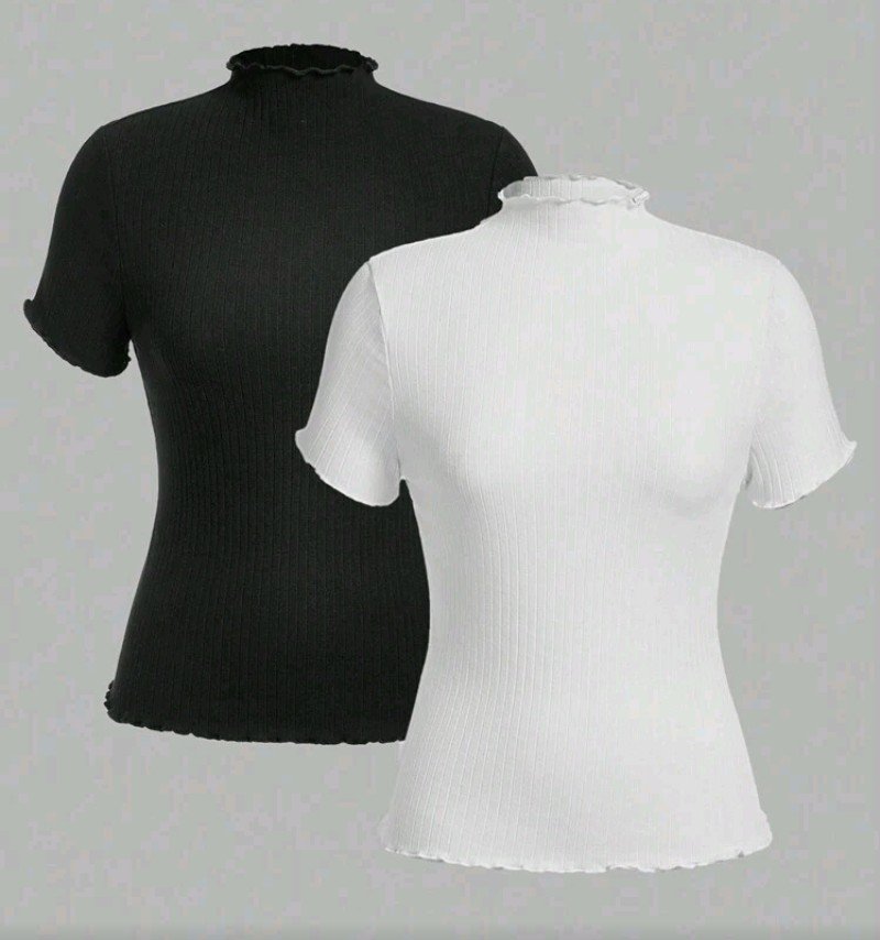+ Free Shippingطقم تيشيرتات بياقة عالية عدد 2 باللون الاسود والابيض