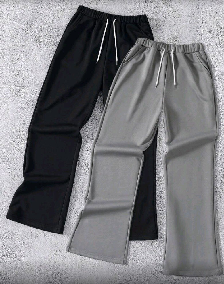 بنطال من coolqubz قطعتان بنطال واسع الساقين محبوك مريح، قماش مريح متوفر باللون الاسود واللون السكني