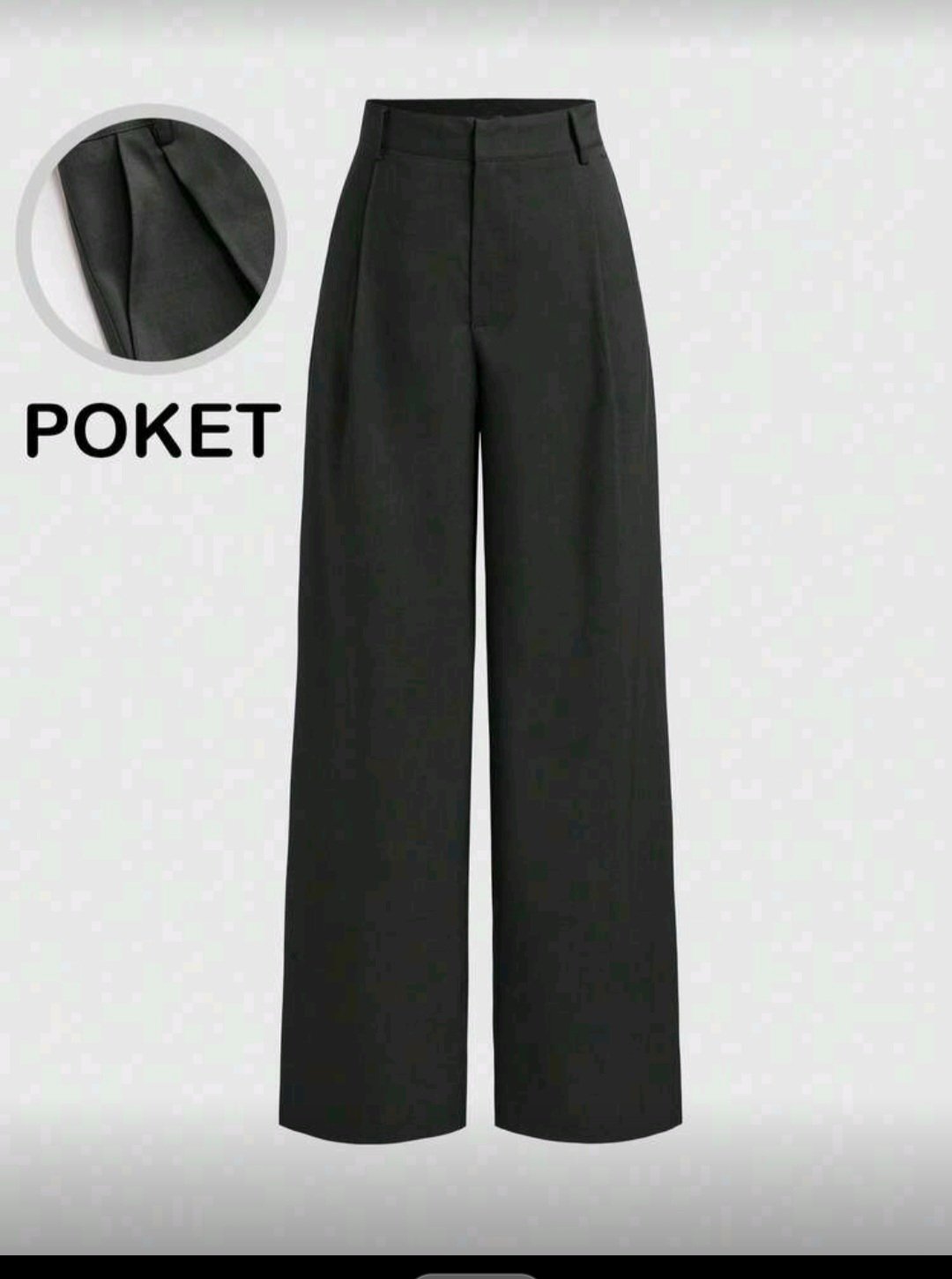 + Free Shippingبنطلون رسمي اسود ساده بقصه ديقه ب اغلاق زر وخطاف +سحاب وقصه واسعة الساقين تبرز جمال القوام
