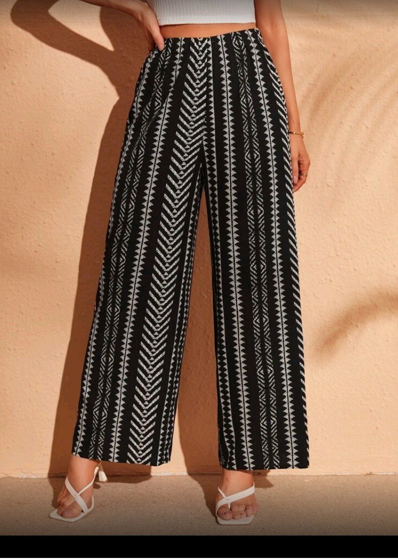 + Free Shippingبنطال واسع الساقين بطبعه هندسيه من ترافاشيك للنساء باللون الاسود