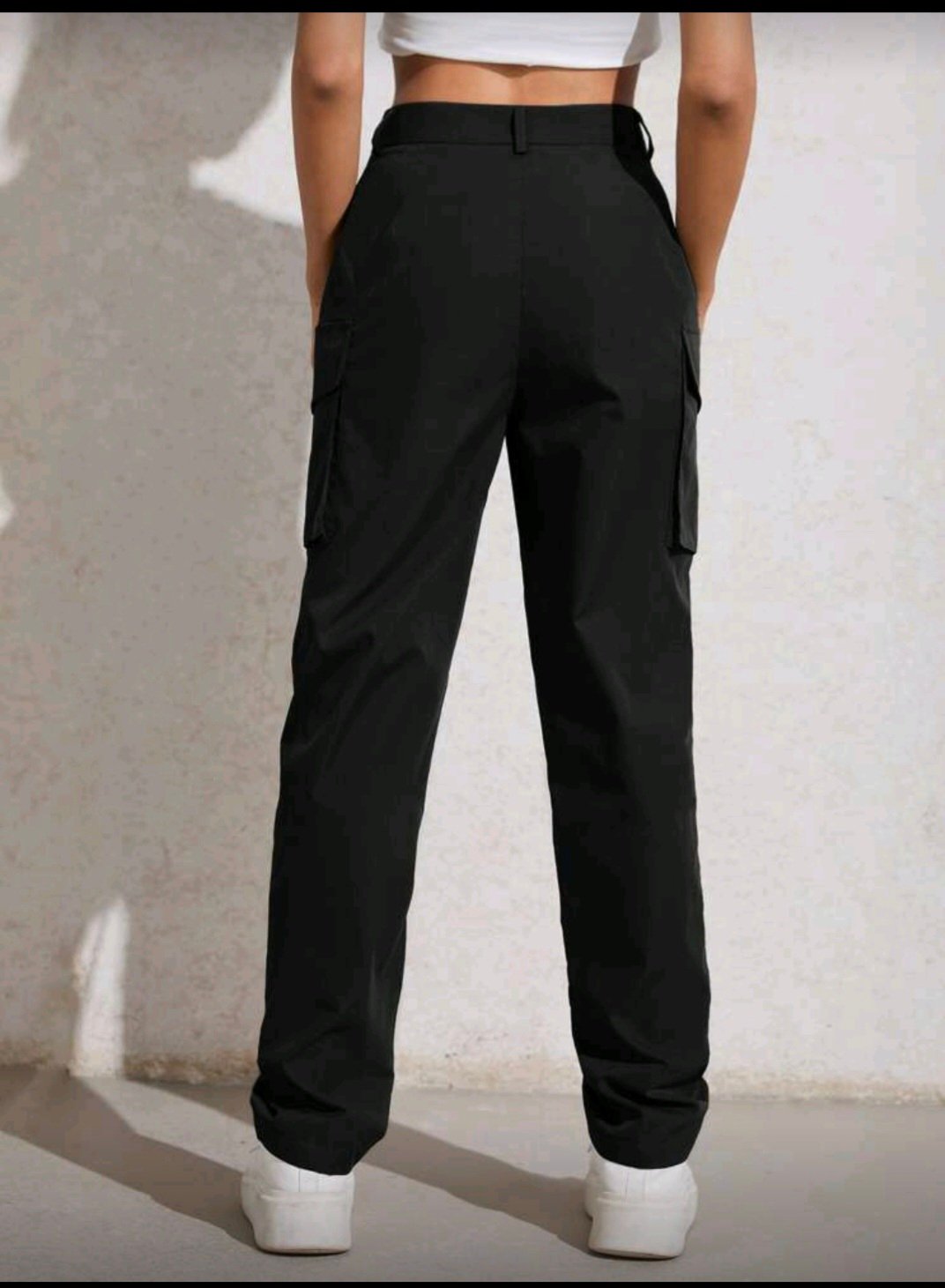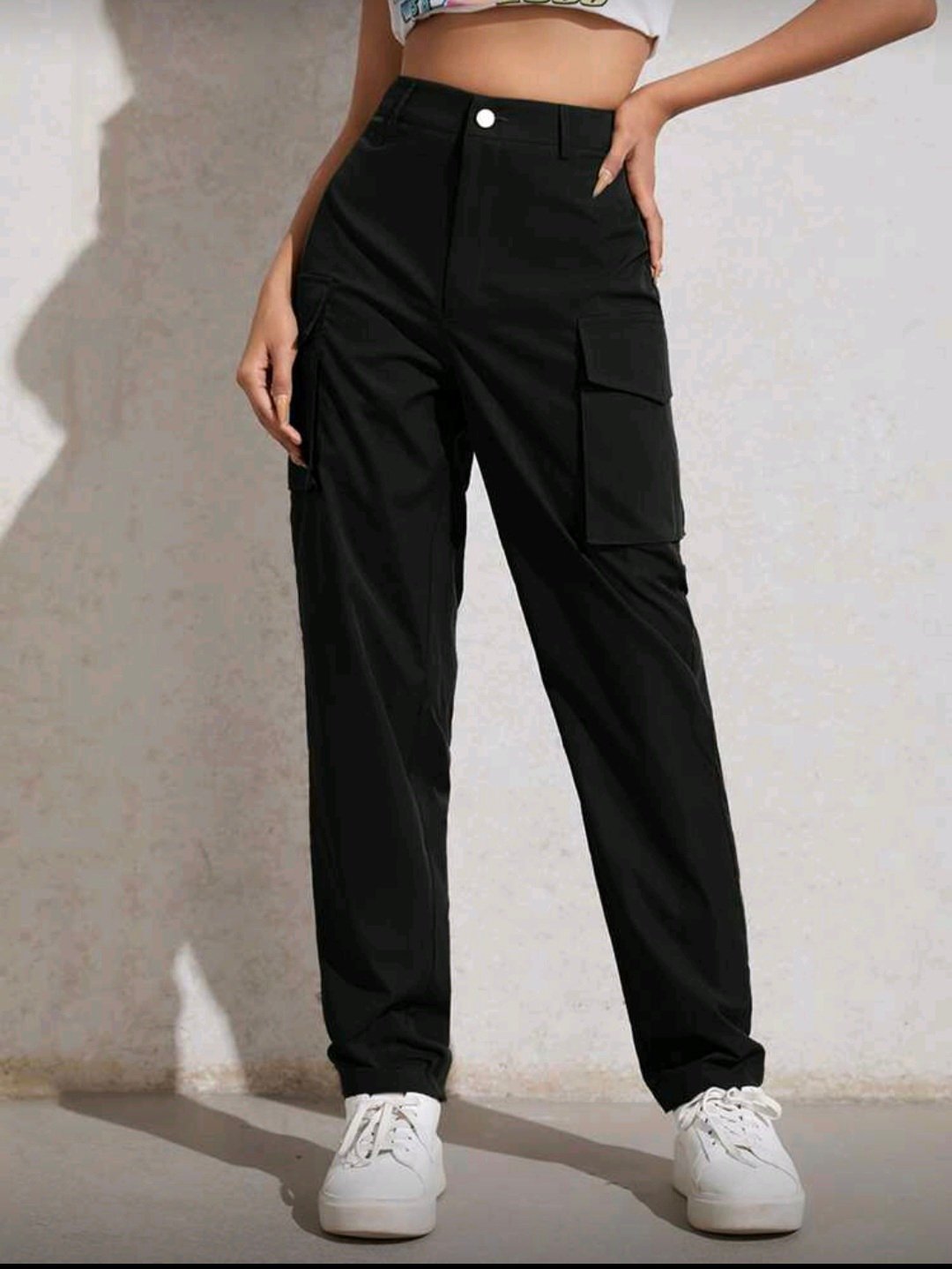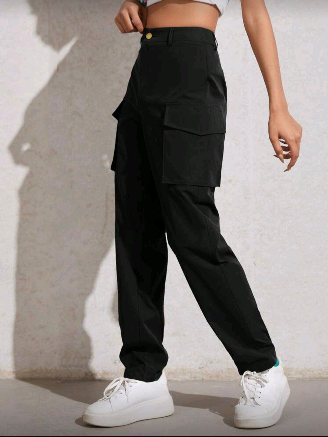 + Free Shippingبنطال ب خصر عال وجيوب بغطاء وسحاب