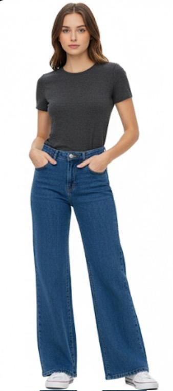 جينز نسائي بخصر عالٍ وأرجل واسعة – بنطلون مطاطي غير شفاف مع إغلاق بأزرار، بنطلون ضيق مناسب لجميع الفصول للملابس اليومية والرسمية – جينز أنيق