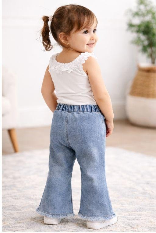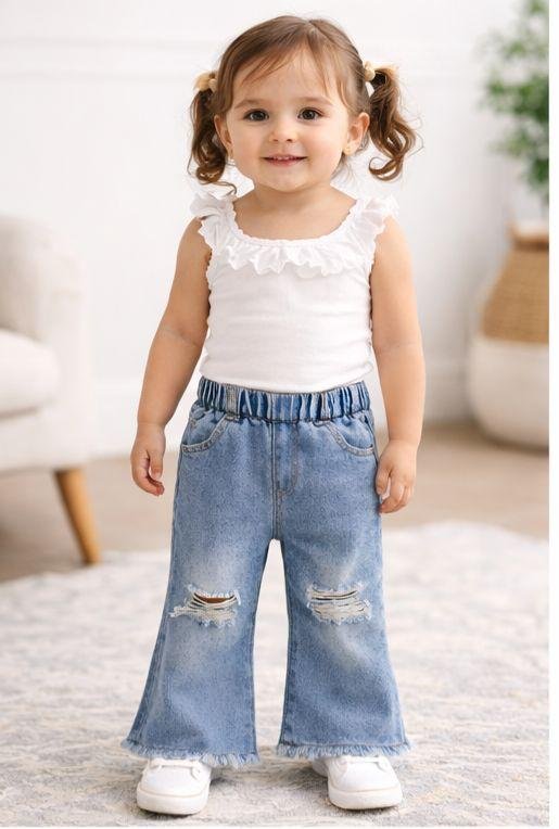 جينز بخصر واسع بتصميم أنيق ولطيف للبنات الصغيرات في مجموعة الخريف.