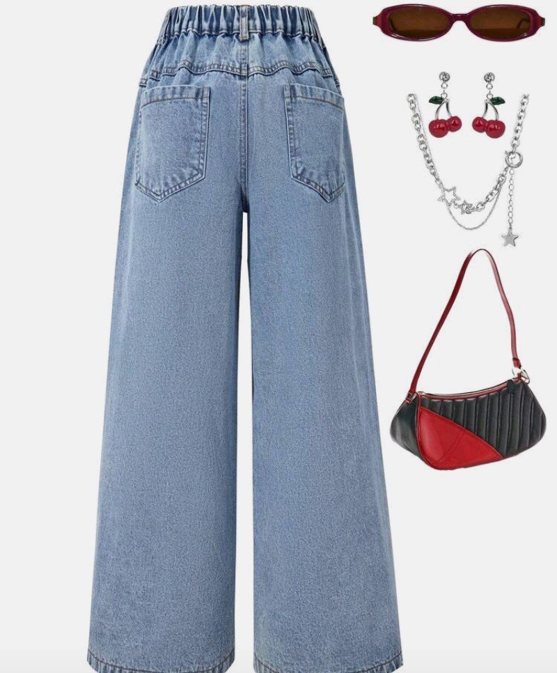 بنطلون جينز كاجوال بتصميم كرزة تطريز بقصة مستقيمة للبنات