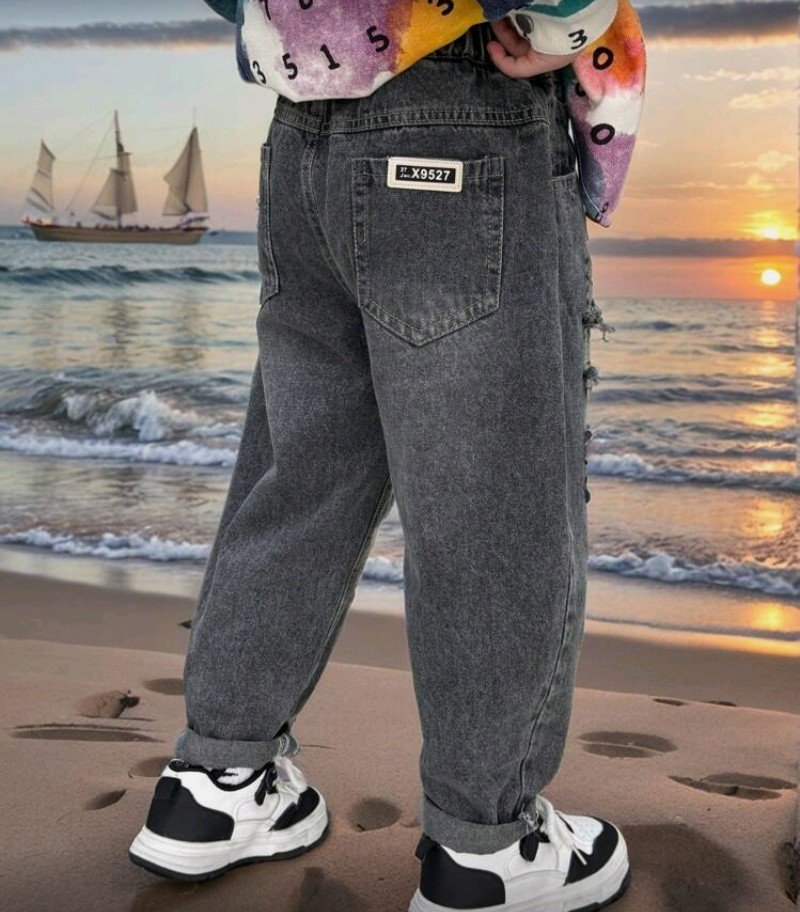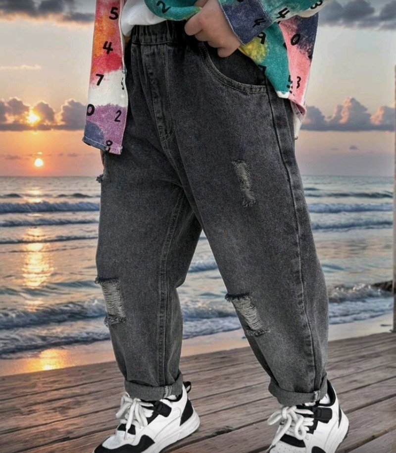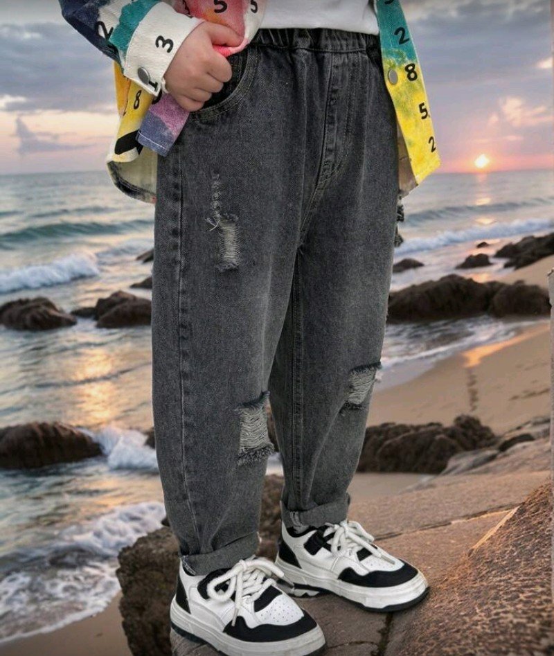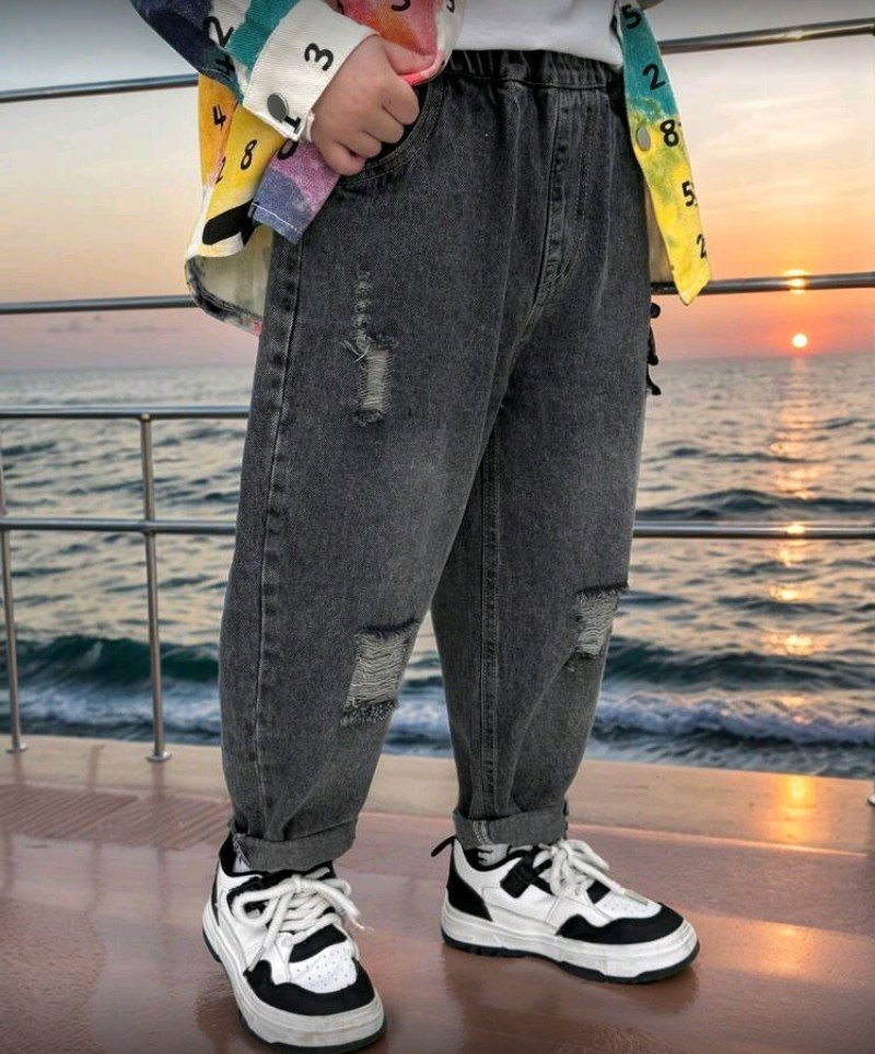 بنطلون جينز ممزق بتصميم كلاسيكي للأولاد الصغار، مناسب لجميع الفصول