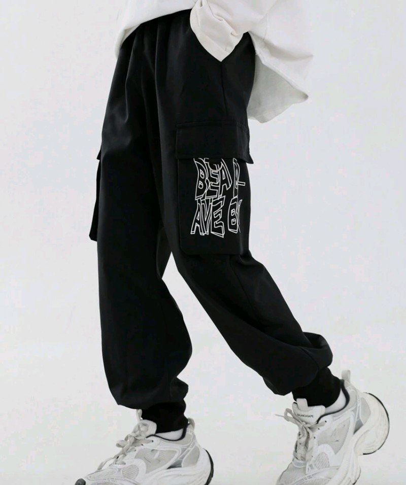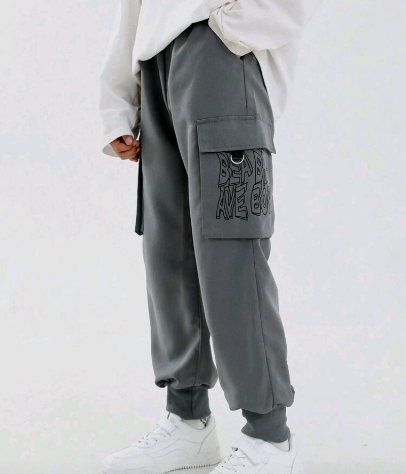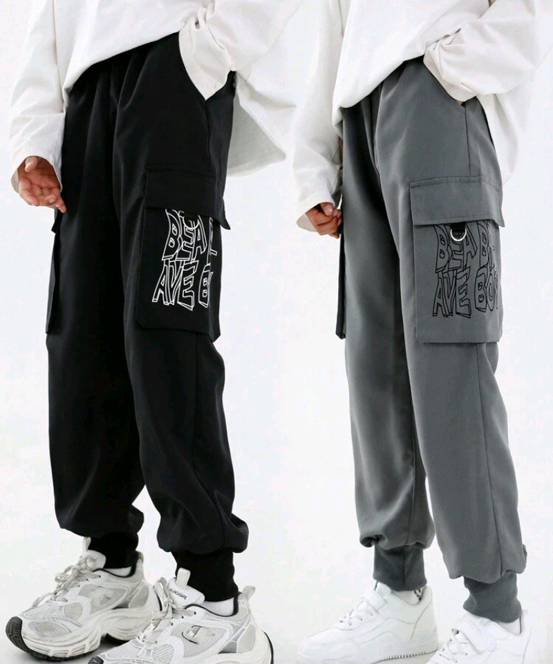 + Free Shipping2 قطعة بنطلون ولادي متعدد الاستخدامات للأولاد مطبوع عليه حروف باللونين الأسود والرمادي، عبوة من قطعتين، مناسب للارتداء اليومي