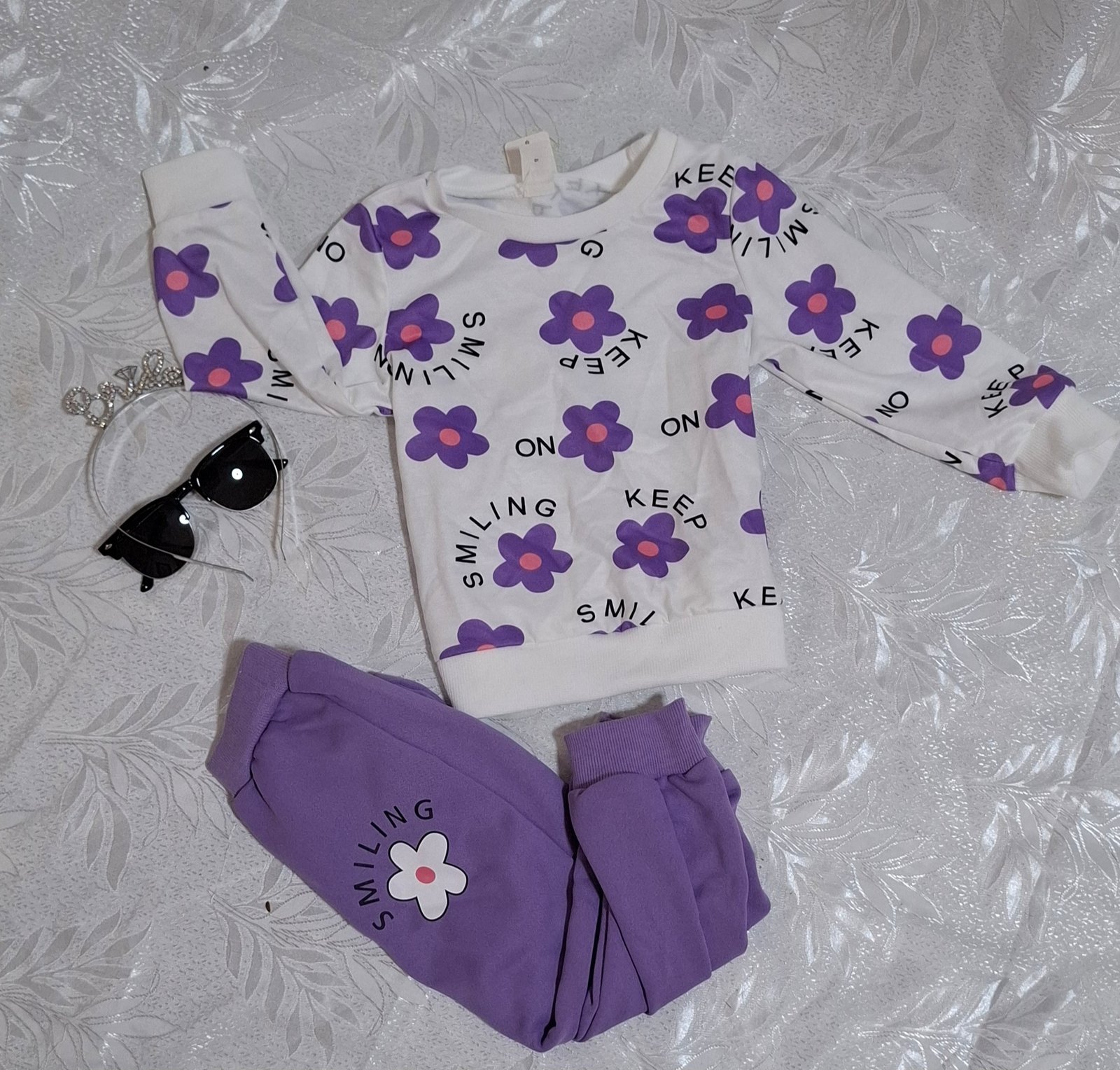 + Free Shippingبيجامه بناتي قطعتين قماش ربيعي مزينه بطبعة من الورود