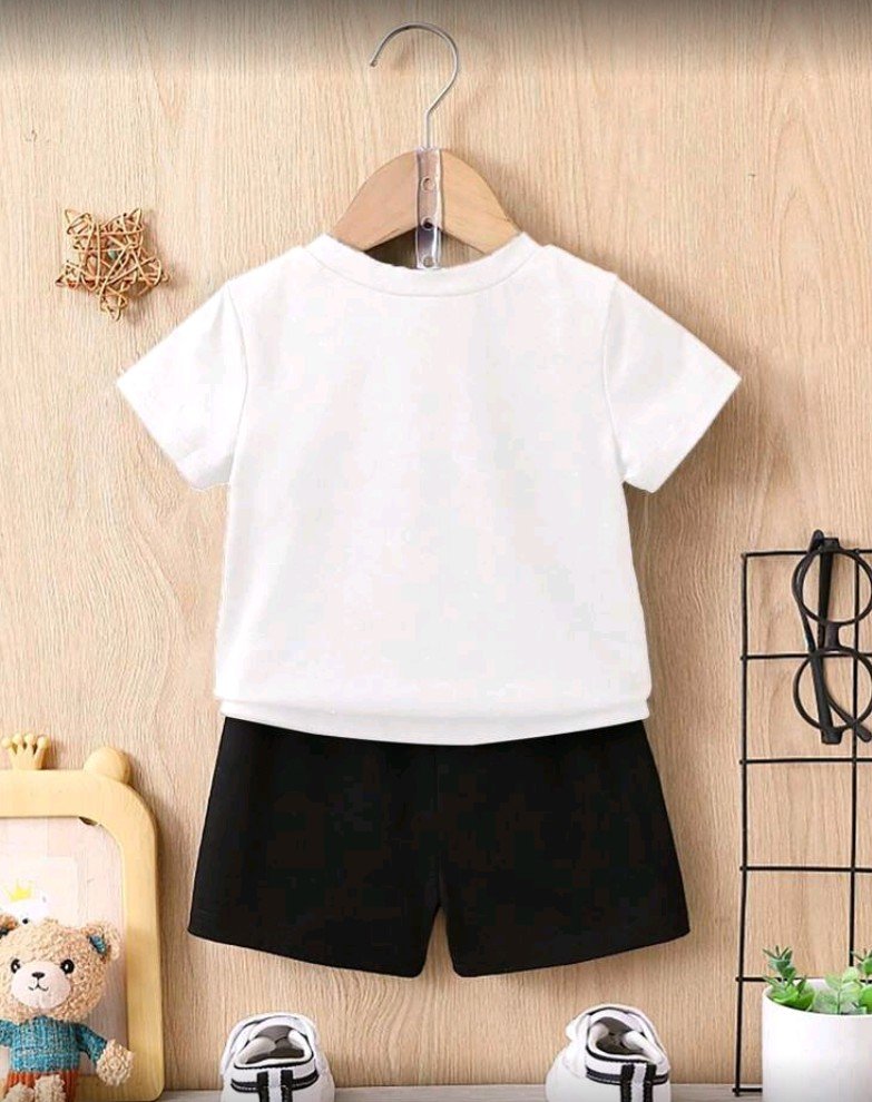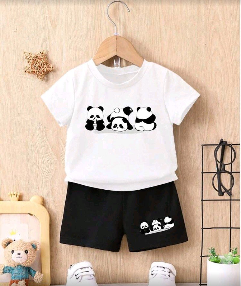 طقم صيفي كاجوال بطبعة الباندا للأولاد الصغار، موضة رياضية خارجية للربيع/الصيف: طقم بلوزة وشورت من قطعتين