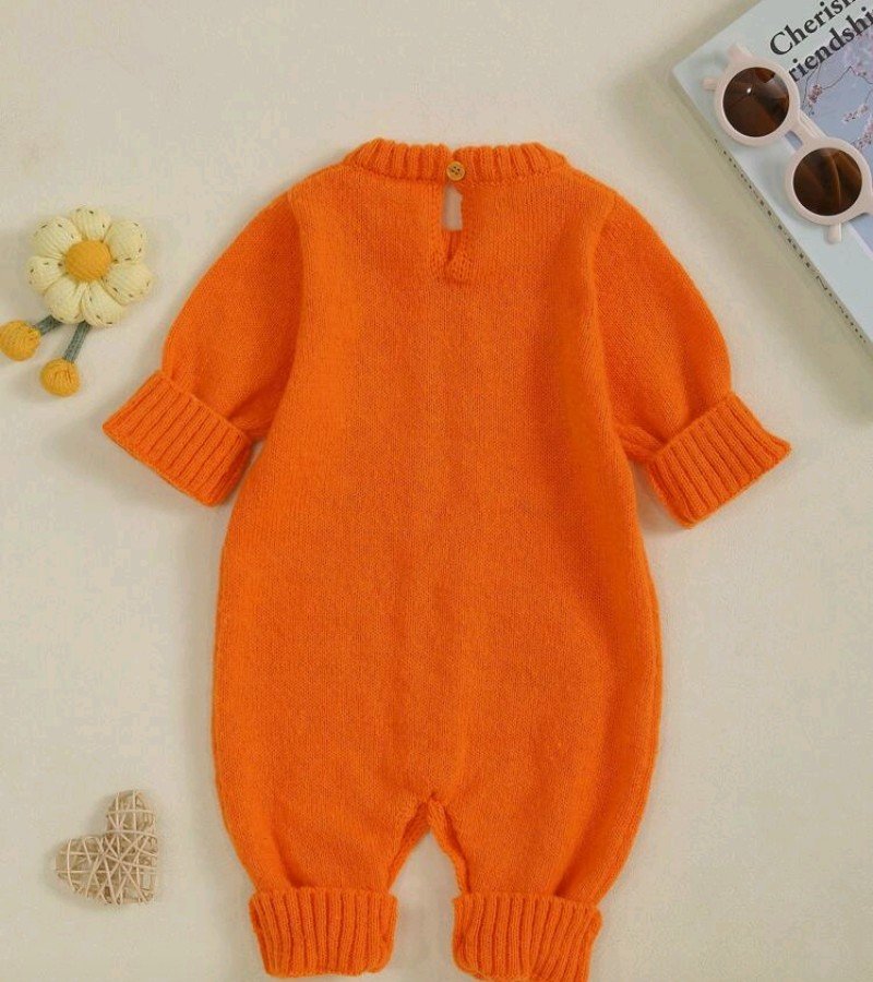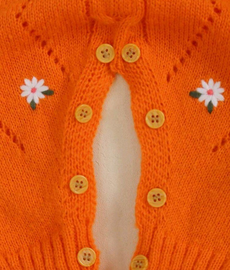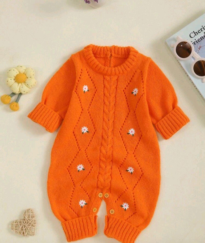 رومبر محبوك بتطريز زهور للبنات الرضع  بدلة شتوية ناعمة بأكمام طويلة وياقة دائرية، ملابس خريف وشتاء مريحة للرضع، إغلاق بقفل متين، مثالية للاستخدام الخارجي