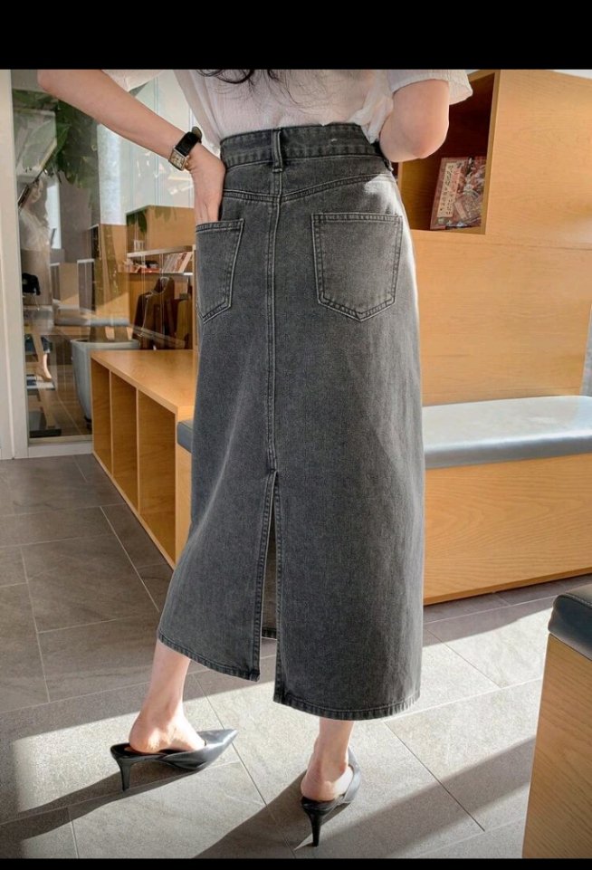 + Free Shippingتنورة ستاتي جينز بفتحه جانبيه وقصه مستقيمه