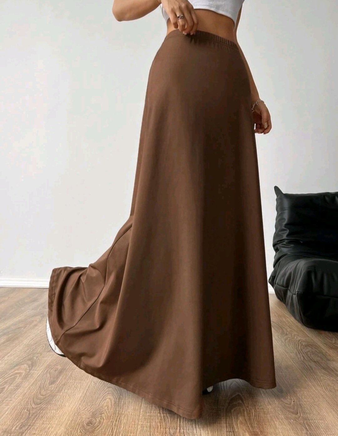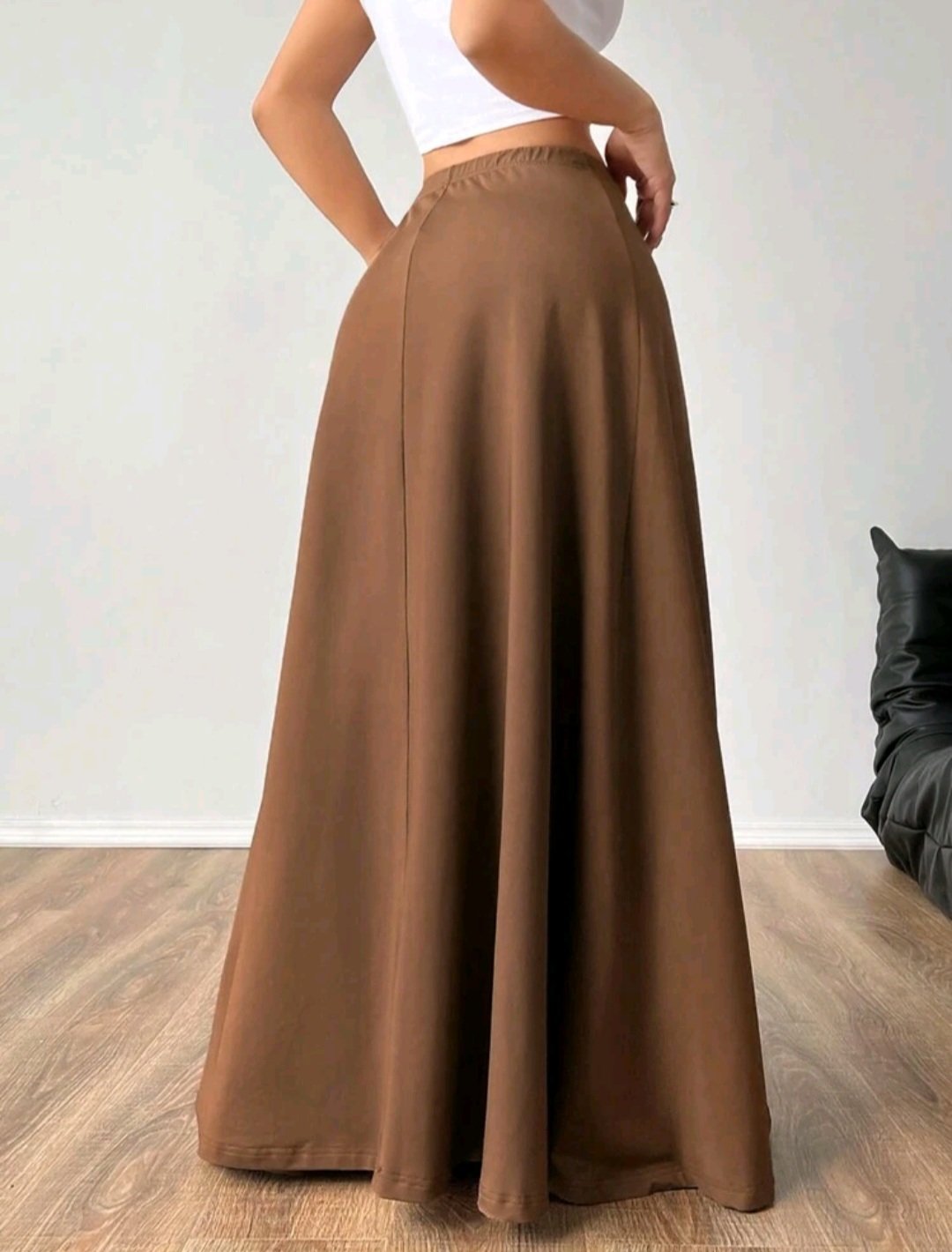 + Free Shippingتنورة ستاتي مرنة بلون سادة تنورة خصر