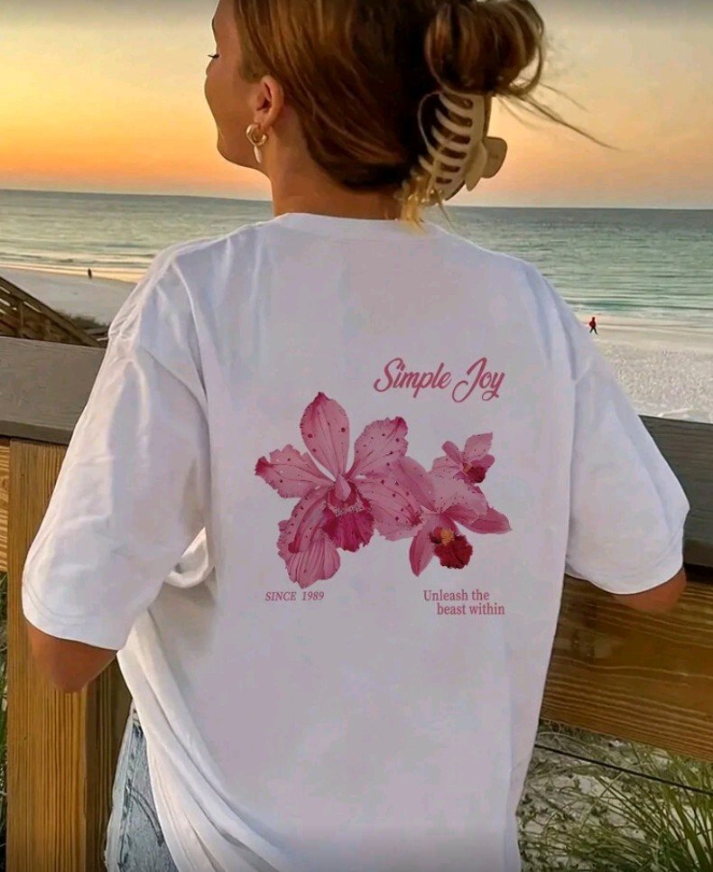 + Free Shippingبلوزة بناتي واسعه قابله للغسيل مطبوع عليه زهور كركديه