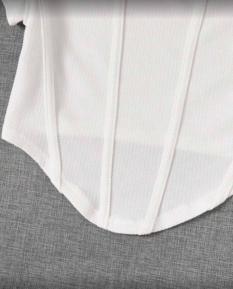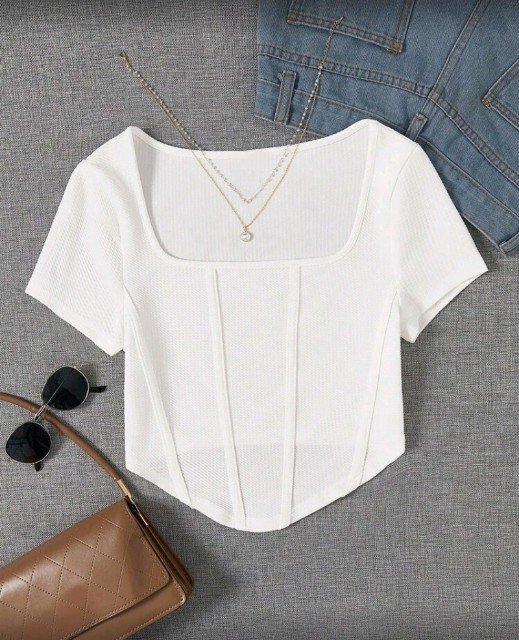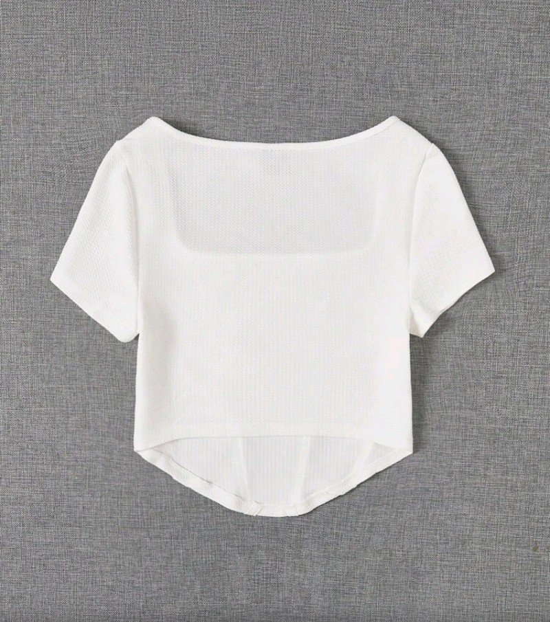 + Free Shippingتيشيرت صيفي برقبه مربعه خياطه اماميه بيضاء
