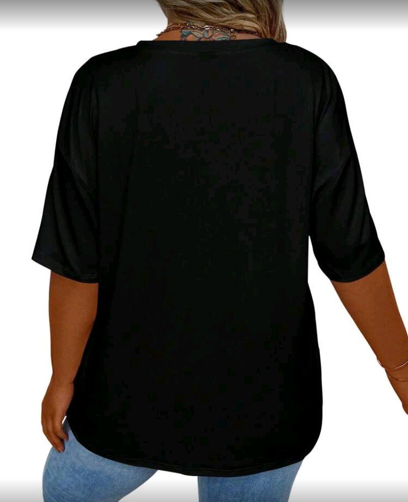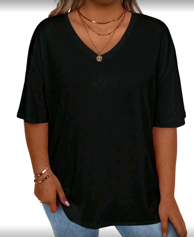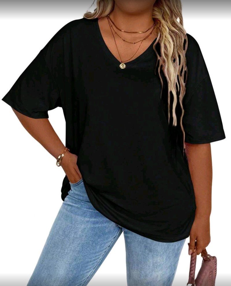 + Free Shippingتيشيرت ستاتي فضفاض ب اكمام قصيرة ورقبه على شكل حرف V من صيحات المقاسات الكبيرة