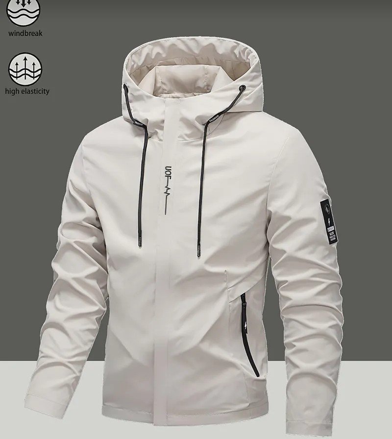جاكيت رجالي كاجوال خارجي، لون موحد أنيق مع جيوب، معطف مريح بقلنسوة وياقة عالية وأكمام طويلة، مناسب للأنشطة الخارجية.