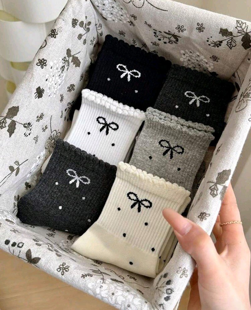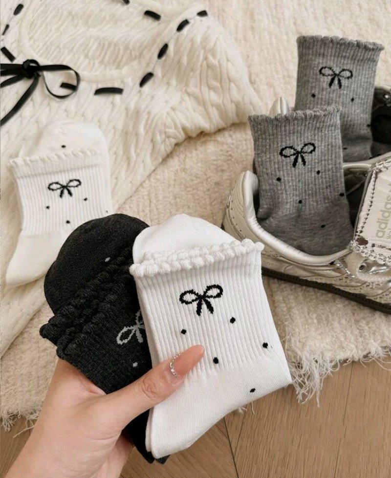 + Free Shipping4 أزواج من جوارب الربيعية/الصيفية، مزينة بفيونكة، منقطة، بنمط مدرسي، بكشكشة، مطاطية، متوسطة الطول لعمر 12_ y16