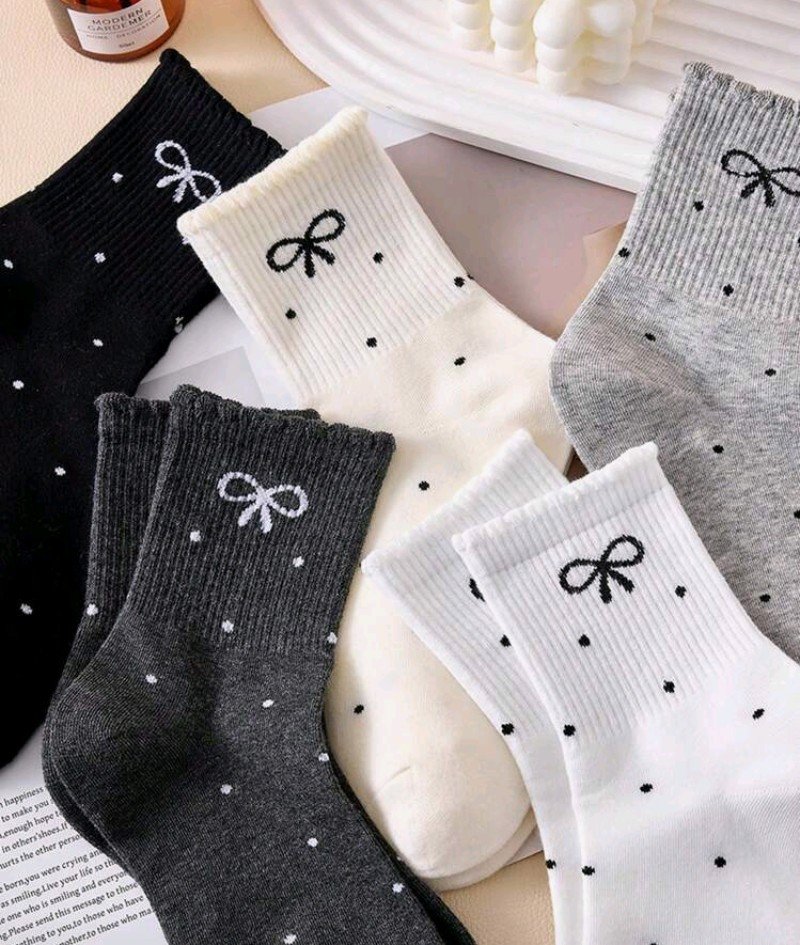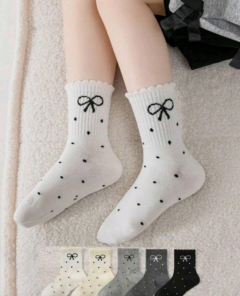 4 أزواج من جوارب الربيعية/الصيفية، مزينة بفيونكة، منقطة، بنمط مدرسي، بكشكشة، مطاطية، متوسطة الطول لعمر 12_ y16