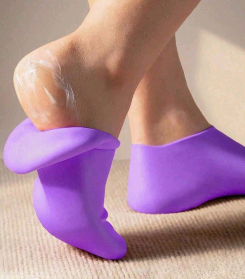 قطعتان من جوارب السيليكون النسائية – جل الألوة فيرا الناعم لجوارب الترطيب للعناية بالأقدام بالهيدروثيرابي، الأقدام الجافة، الكعب المتشقق وتنعيم الجلد الخشن باللون البيزي الفاتح، خالية من الكحول، اللون الأرجواني الفاتح، جوارب العناية بالأقدام، جوارب الهيدروثيرابي، جوارب النسيج الناعم، جوارب خالية من الكحول