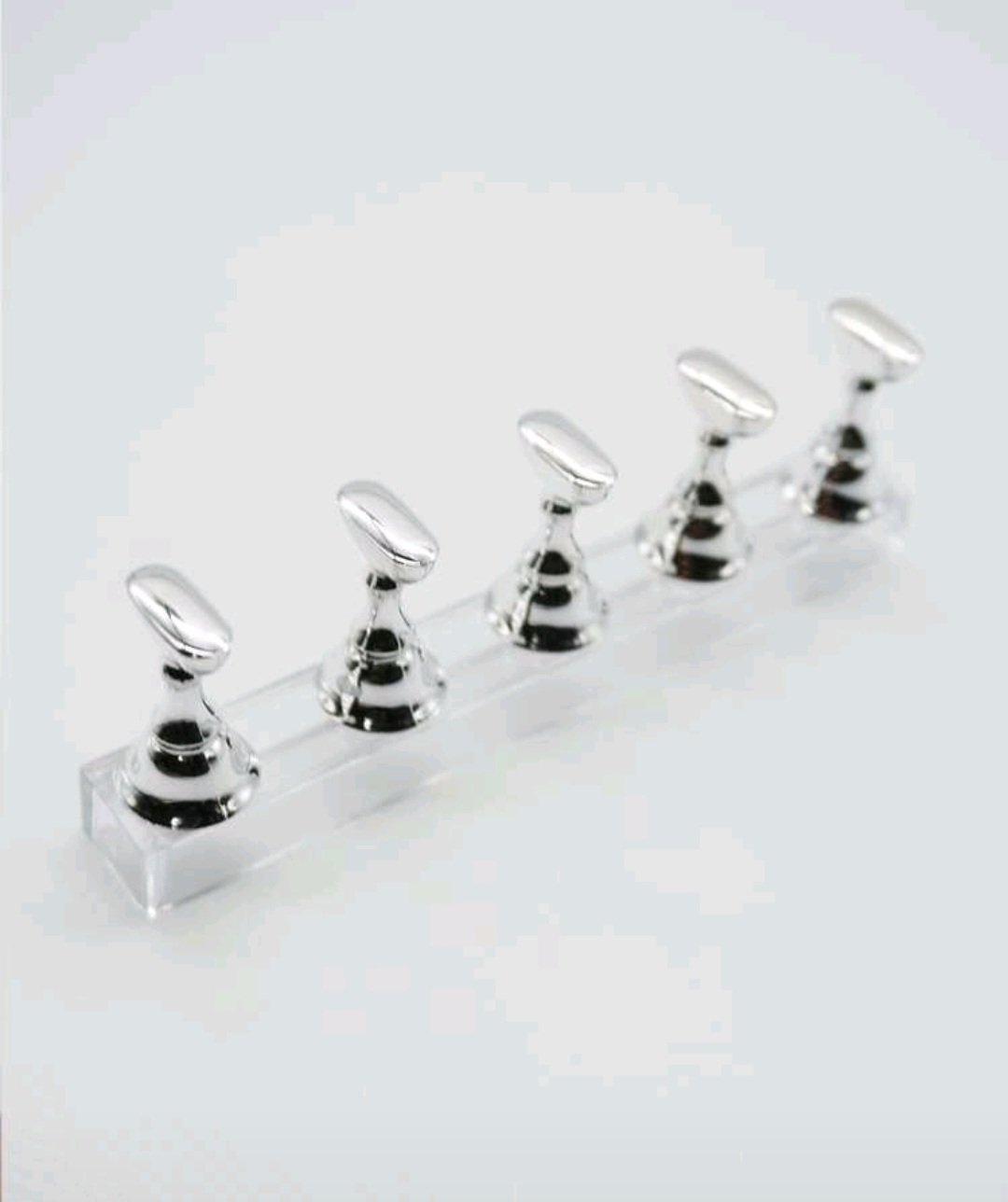 5 قطع من حوامل تدريب تصميم اظافر اكريليك فضيه مع حامل قاعدة شفاف واحدة حوامل اظافر مغناطيسيه