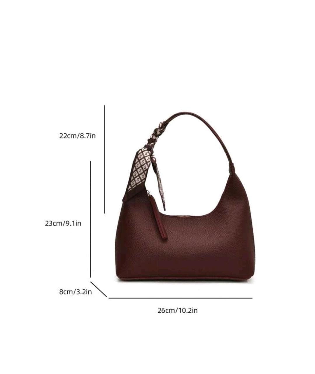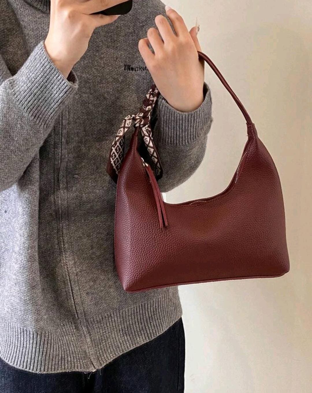 Uncategorised, شنطحقيبة كتف انيقه باللون العنابي تتزين بالوشاح
