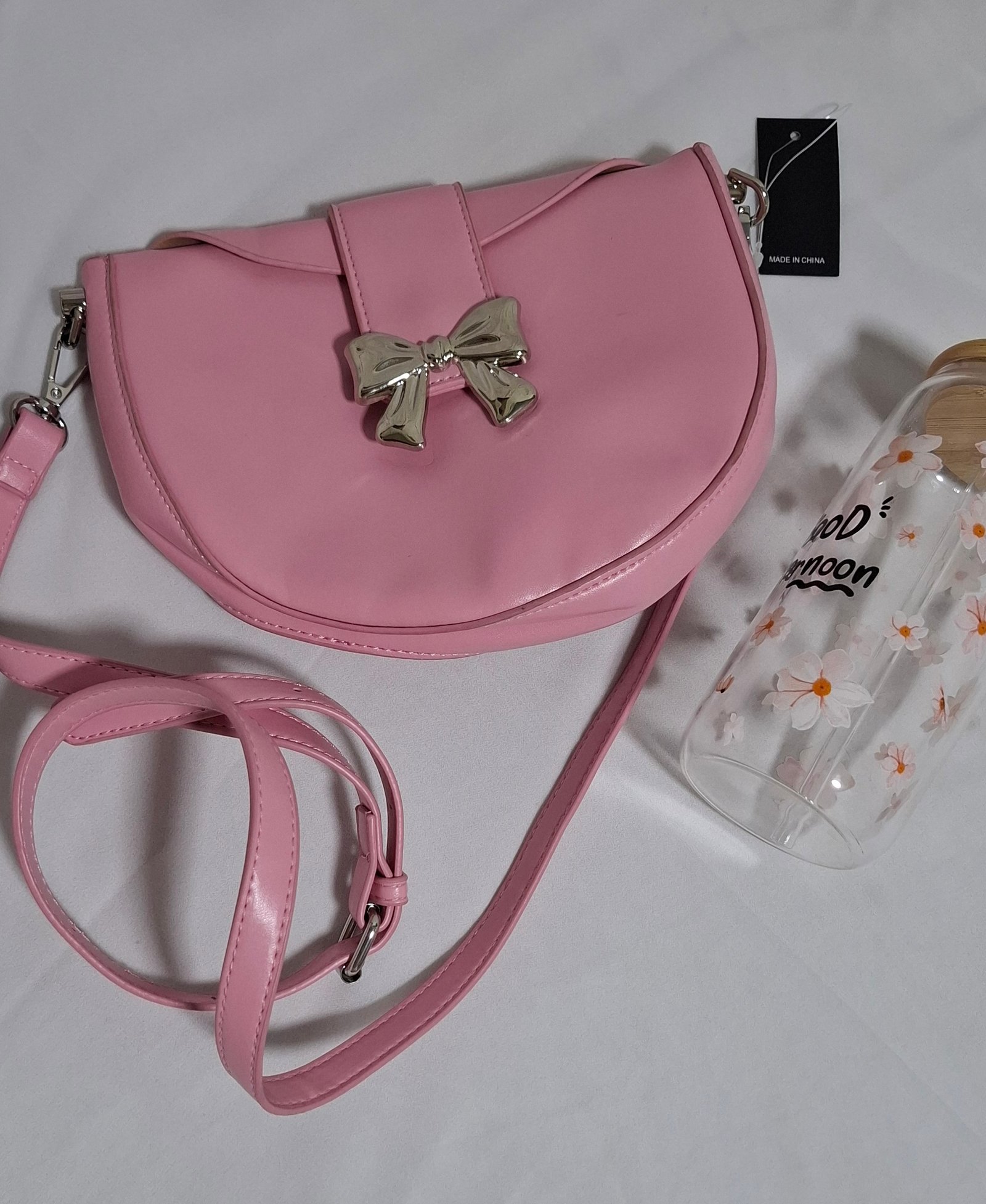 حقيبة يد نسائية أنيقة مصنوعة من المادة الصناعية مع أدوات ذهبية اللون وتزيين بفيونكة – حقيبة كروس توت مناسبة لجميع الفصول مع حزام ثابت، وأدوات ذهبية اللون وإغلاق بسحاب، متعددة الاستخدامات للمناسبات الكاجوال والرسمية، هدية مثالية للنساء