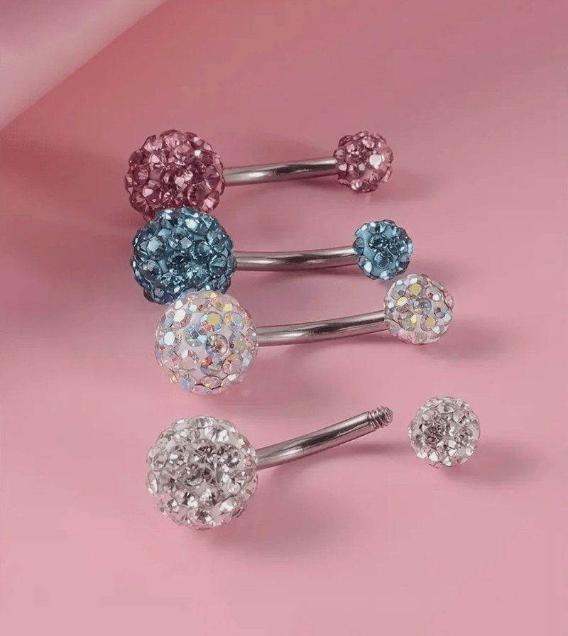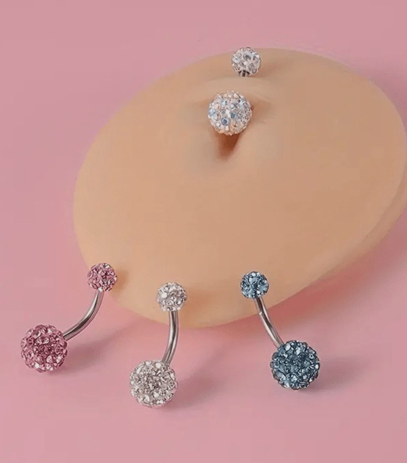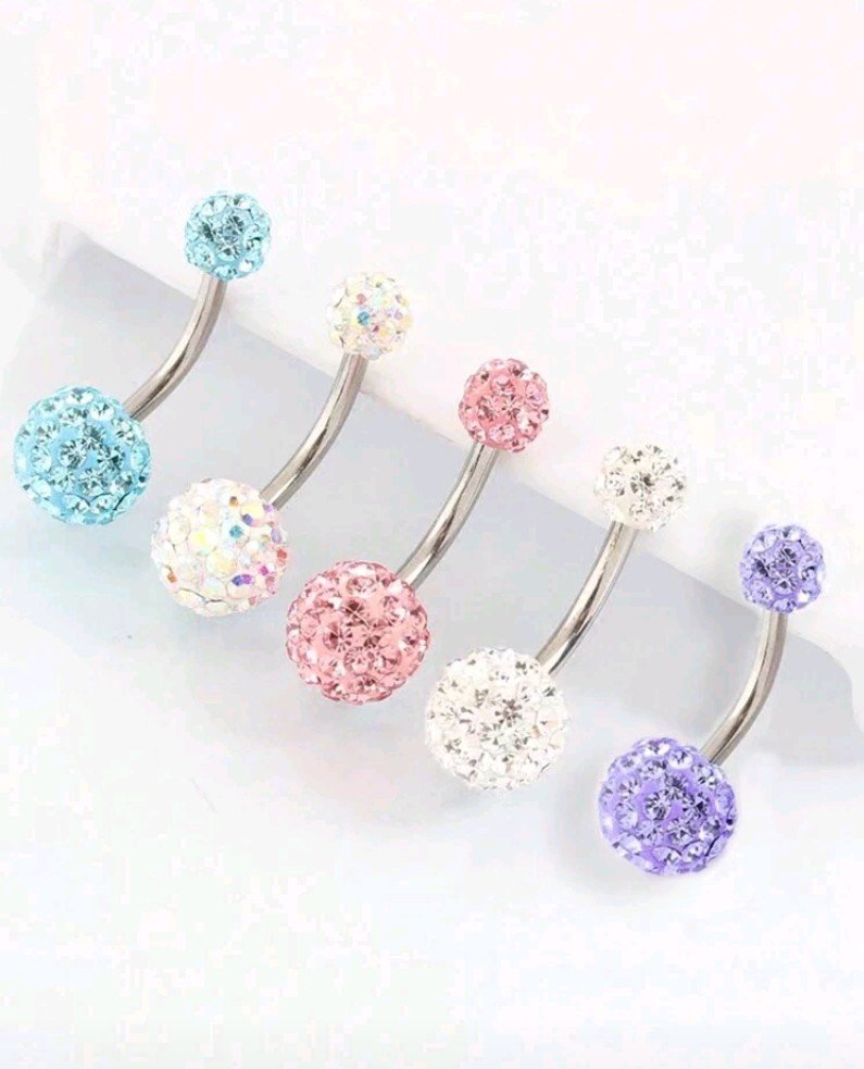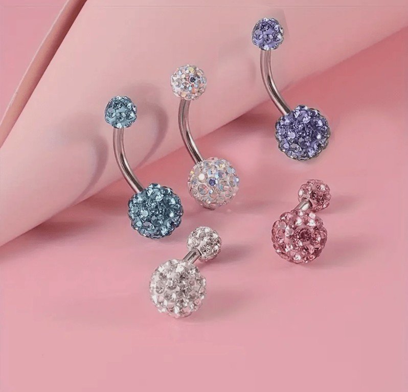 طقم مجوهرات ثقب السرة الكريستالية 5قطع، فولاذ لا يصدأ 5مم/8مم، مناسب للنساء