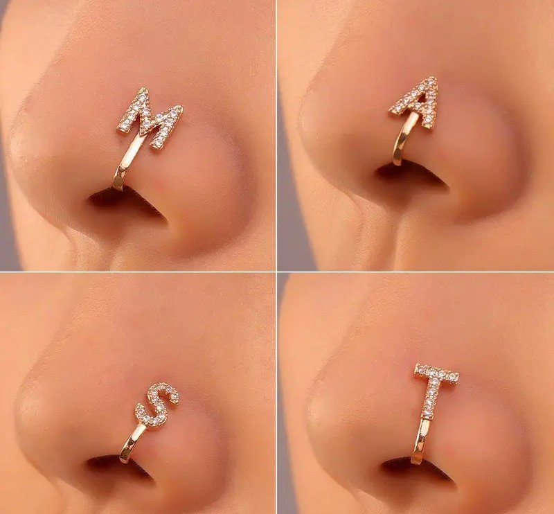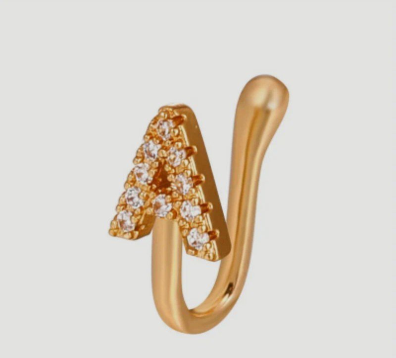 1 قطعة خاتم أنف مينيمالي من سبيكة مع حجر زركونيا صناعي – حلقة أنف بدون ثقب بحرف A وأحجار زركونيا لامعة، مجوهرات أزياء للرجال، هدية له، إكسسوار أنيق بلمسة معدنية