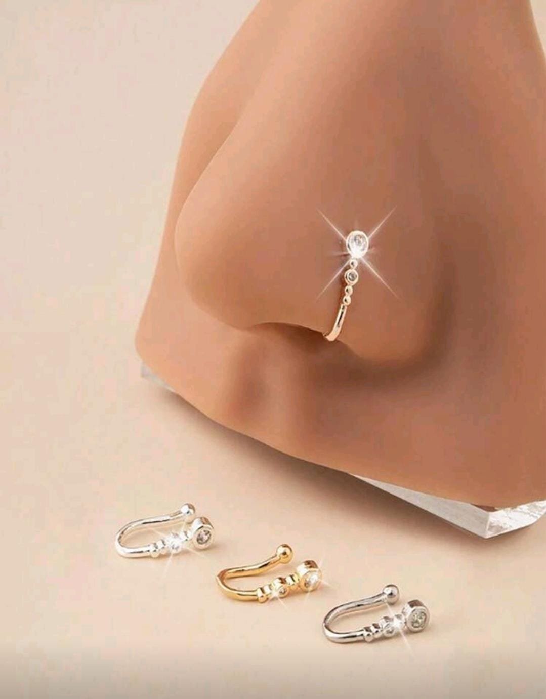 نثريات واكسسواراتقطعه واحدة من حلق الانف لون السلفر مرصع باحجار الزركونيا