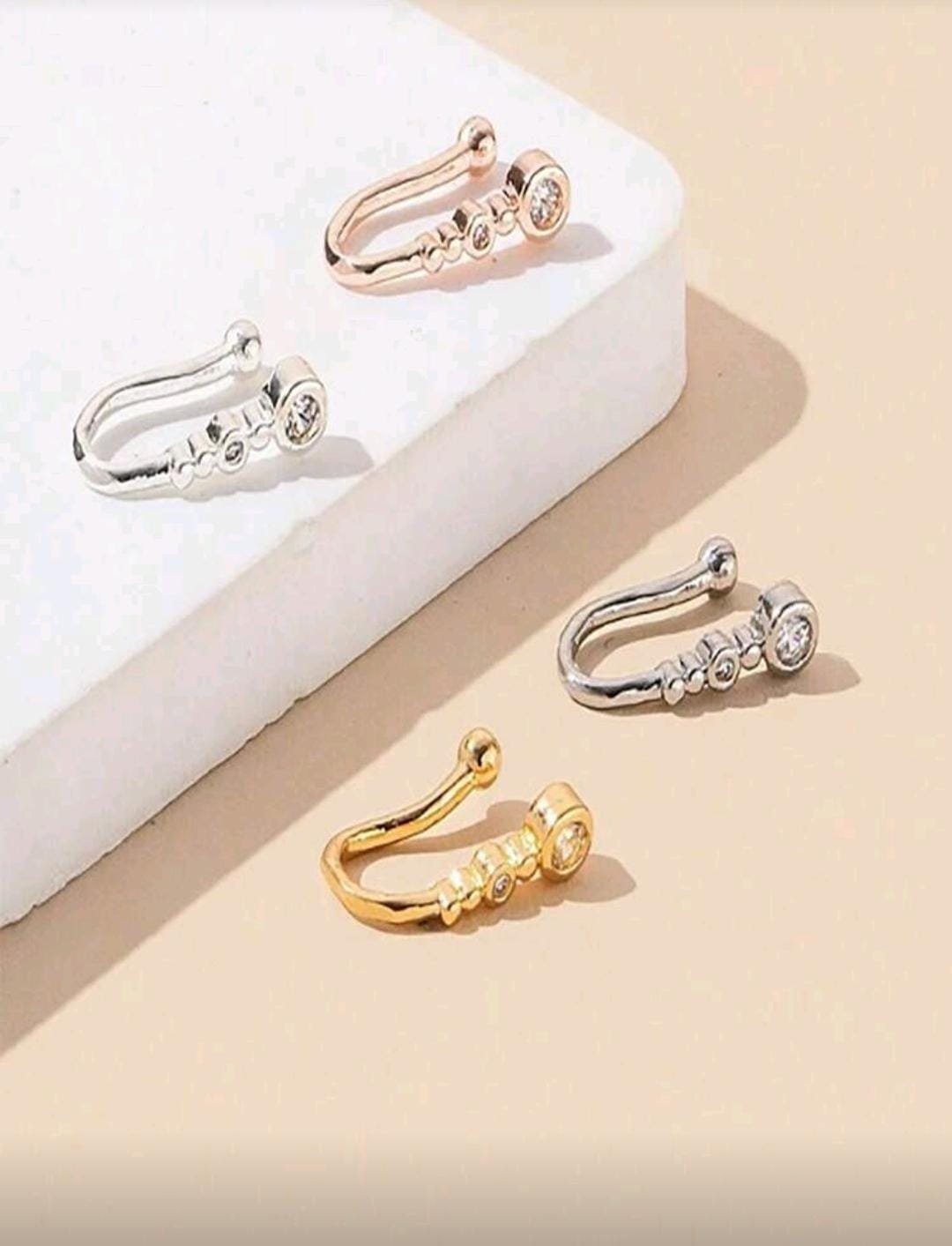 + Free Shippingقطعه واحدة من حلق الانف لون السلفر مرصع باحجار الزركونيا