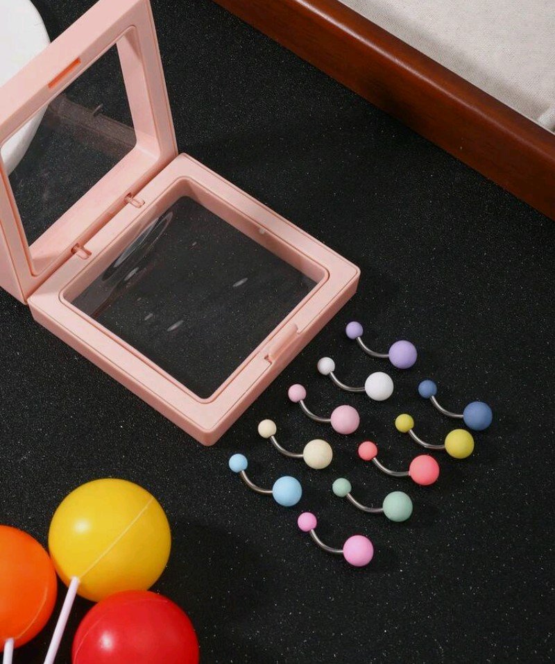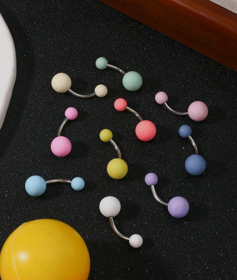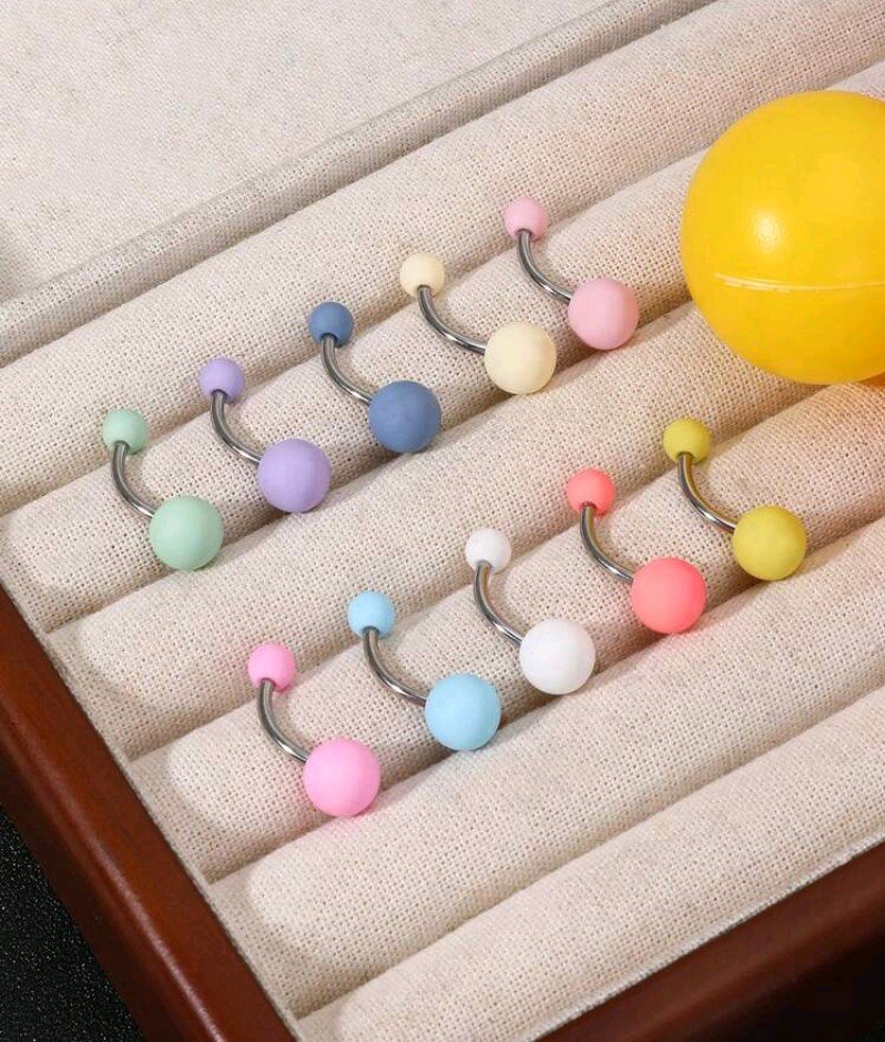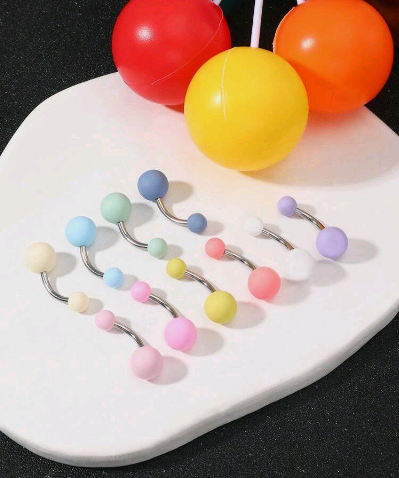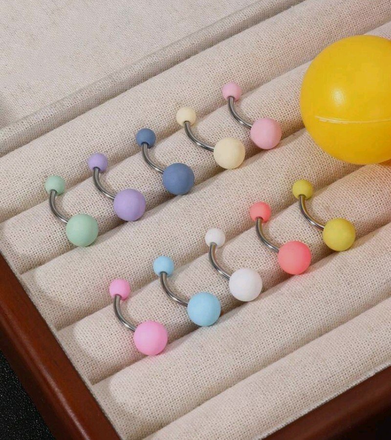 خاتم السرة الموديل البارذل من الأكريليك والفولاذ المقاوم للصدأ متعدد الألوان ( 10 ألوان)، مناسب للنساء لارتدائه في الحياة اليومية، الزفاف، عيد الأم، إلخ. له تصميم فريد ونسيج ناعم وخالي من الحساسية