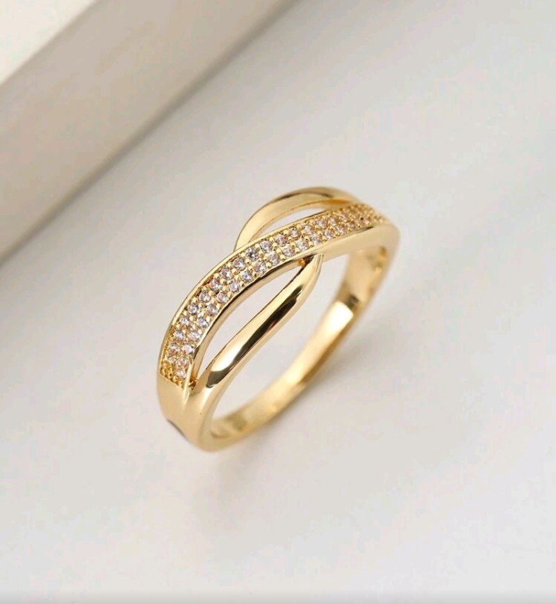 خاتم واحد بتصميم هندسي من الزركونيا المكعبه المرصعه مناسب للارتداء اليومي
