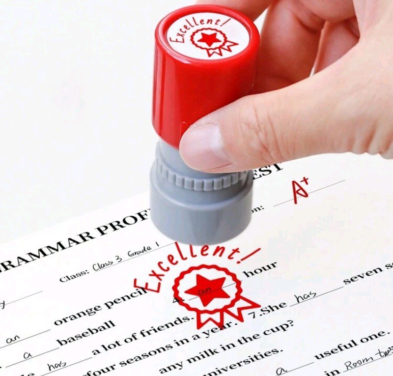 ختم المعلم الممتاز – ختم حبر أحمر ممتع وإبداعي للوازم المدرسية والمكتبية، شكل دائري