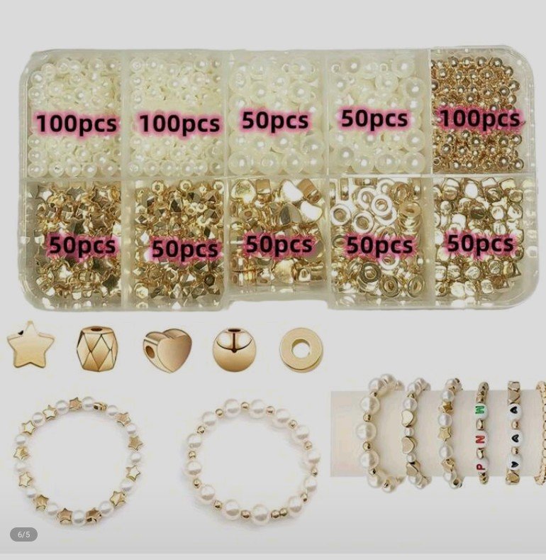 مجموعة من 650 قطعة خرز صندوق من قلوب خماسية ممزوجة بخرز اكريلك