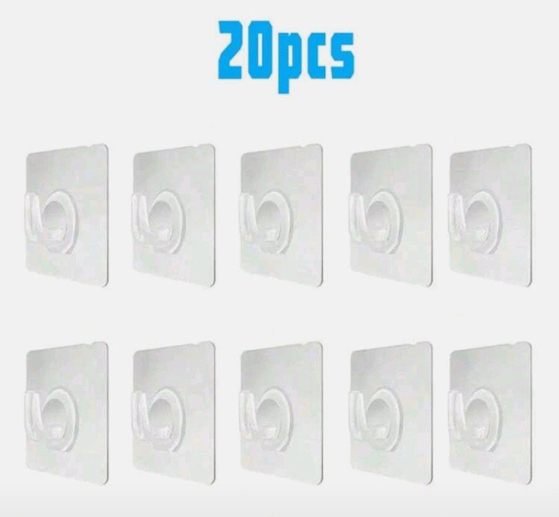 خطافات بلاستيكية ذاتية اللصق 20 قطعة، تركيب سهل على الجدار، أسلوب عصري، خطافات لاصقة شفافة مقاومة للماء للشاشات، الأردية، المفاتيح في المطبخ والحمام