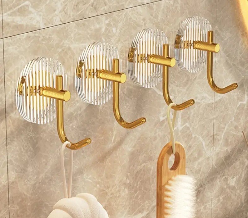 خطافات حائط أكريليك بتصميم عصري، مجموعة من 10قطع، مثبتة بلا انزلاق لتعليق المناشف، تخزين على الحائط بدون حفر للحمام، غرفة النوم، المطبخ – ذهبية/فضية