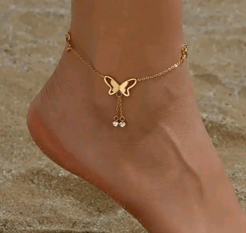 طوق كاحل مينيمالي مزين بالياقوتات على شكل فراشة، إكسسوار عصري فاخر وواحد الأطوار للنساء، مثالي للشاطئ في الصيف والتنقلات اليومية.