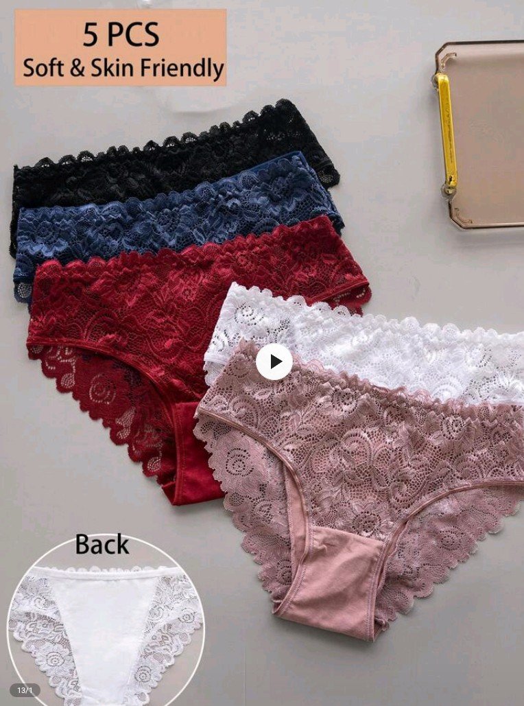 + Free Shippingخمس قطع ملابس داخلية ستاتي مثلثة من الدانتيل بلون سادة