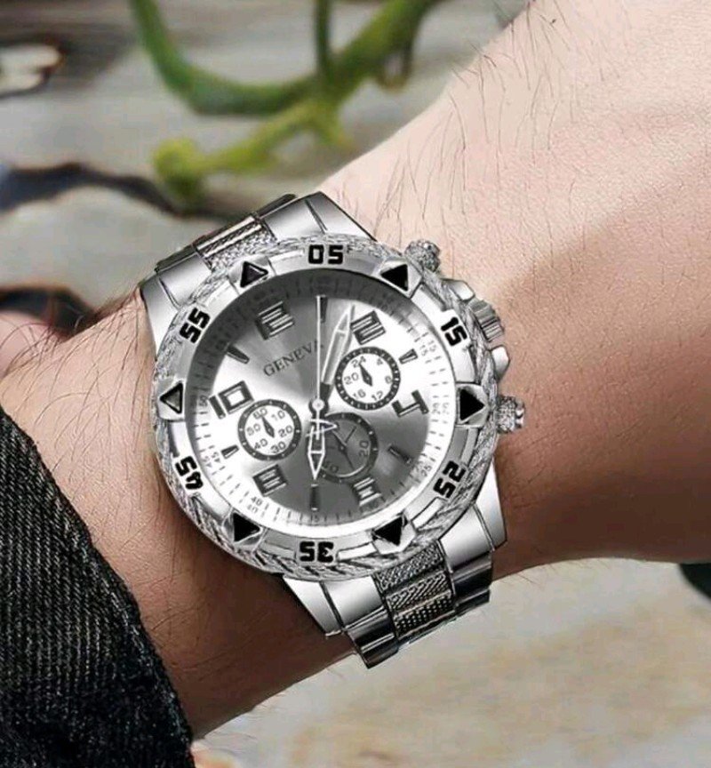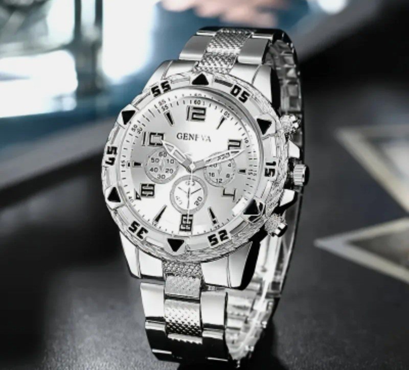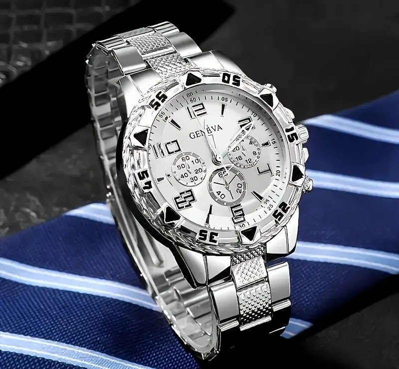 + Free Shippingساعة رجالية كوارتز بسوار فولاذي ثلاثي العيون، ساعة رقمية أنيقة بمينا أبيض زجاجي، الأكثر مبيعًا